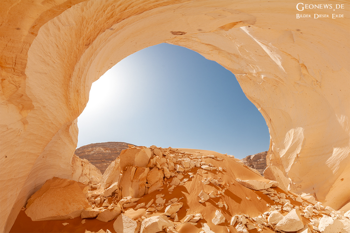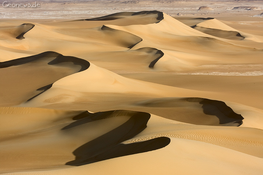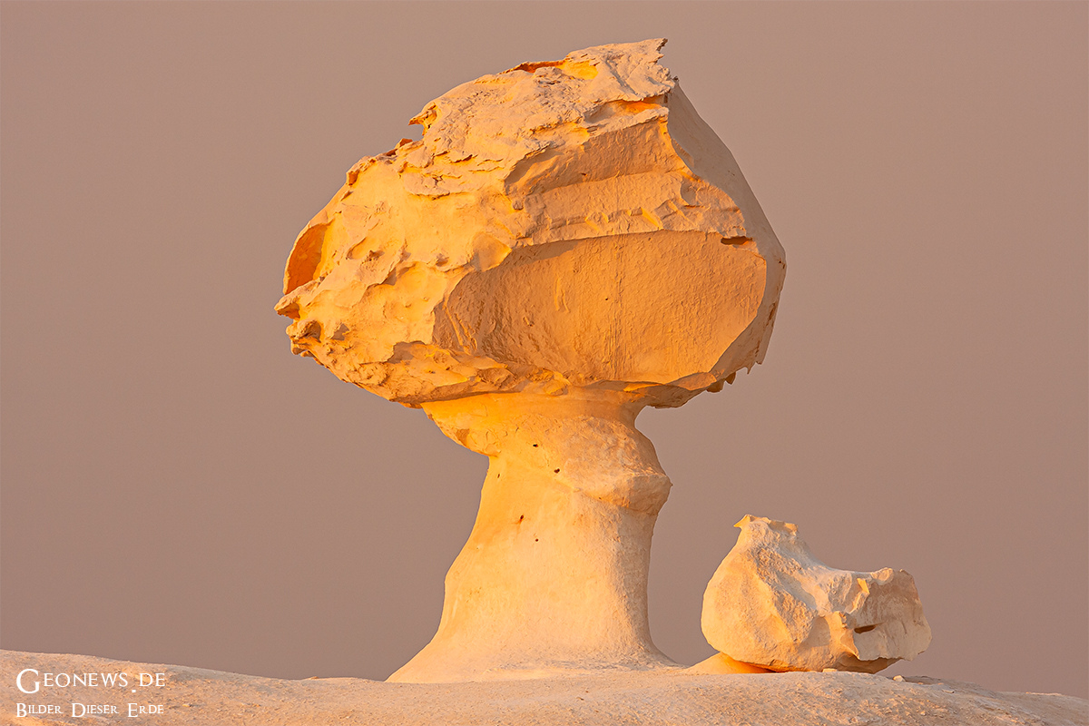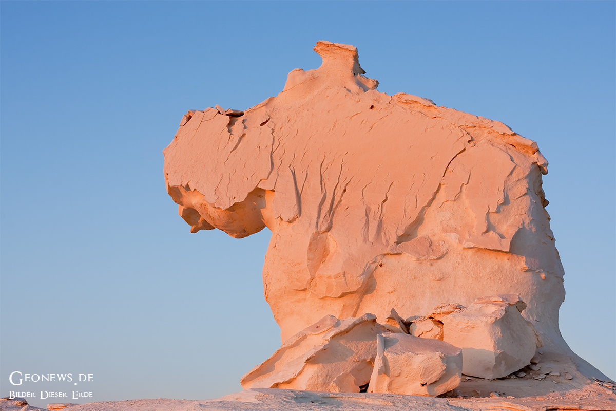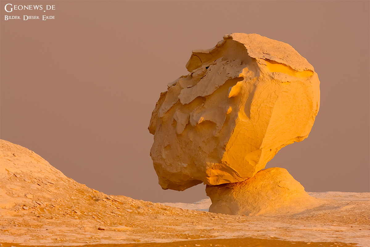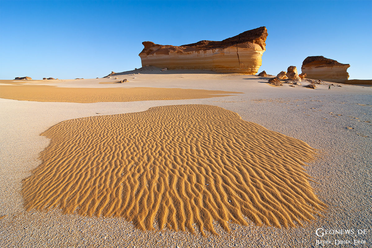 Die Weiße Wüste (el-sahara el-beida) bezeichnet ein ca. 150 km² großes Gebiet zwischen den Oasen Farafra und Bahariya und dem sich in Westen bis zur Oase Siwa erstreckenden großen Sandmeer. Leider werden die dort landschaftsprägenden Gesteinsskulpturen oft als Kalkstein bezeichnet. Die namensgebenden, blendend weißen Gesteine bestehen jedoch aus winzig kleinen Kieselalgen (Diatomen), die hier das einzige Meer bevölkert haben. Das prall mit Leben gefüllte Meer hat sich in eine äußerlich, karge lebensfeindliche Wüste verwandelt.