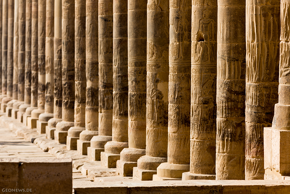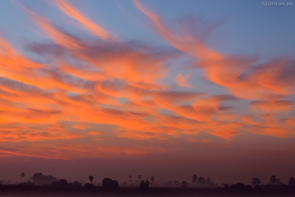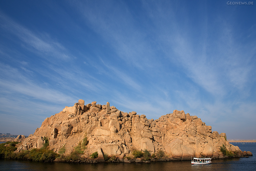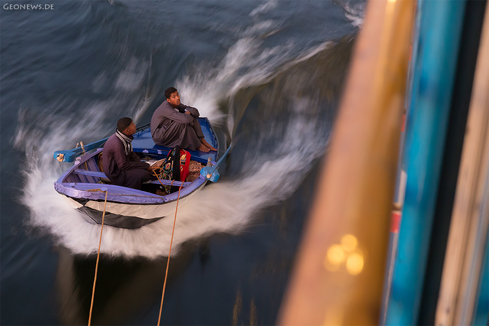 Quell des Lebens und Wiege der Kultur Ägyptens, schlängelt sich als größter Fluss Afrikas und längster Fluss der Erde als grünes Band durch die meist karge Wüstenlandschaft. Das Quellgebiet liegt in den Bergen von Burundi und Ruanda. Er durchquert dann den Sudan, um dann am Ende, nachdem der Nil die Hauptstadt Kairo durchquert hat, in einem ca. 25.000 km² großem Delta ins östliche Mittelmeer zu münden