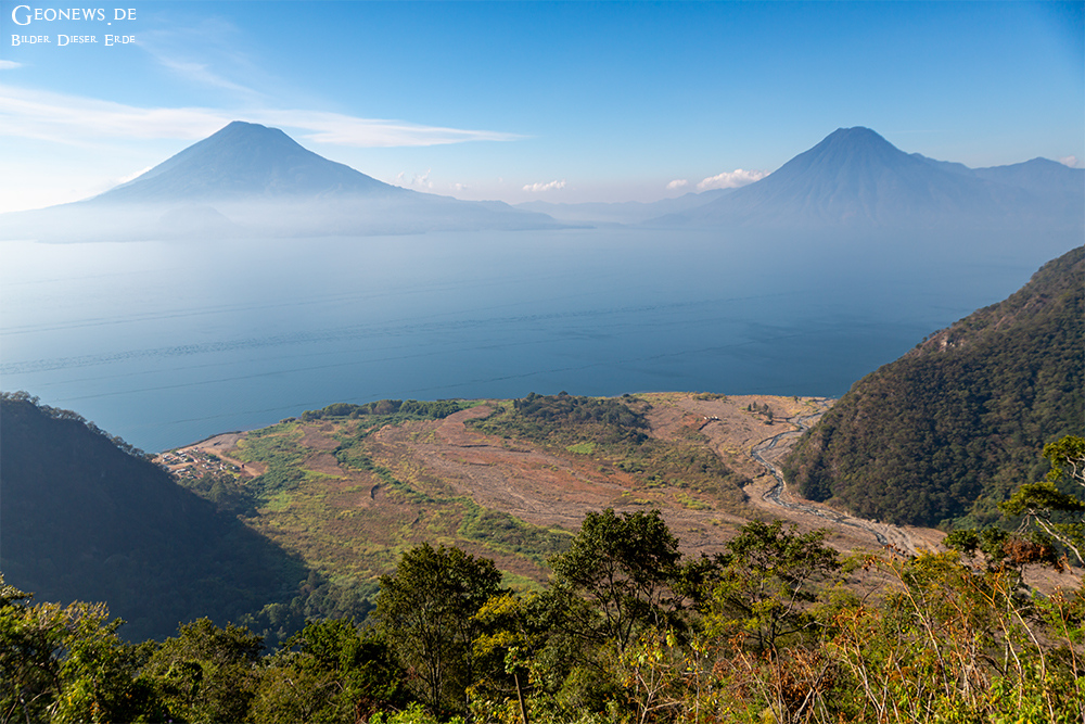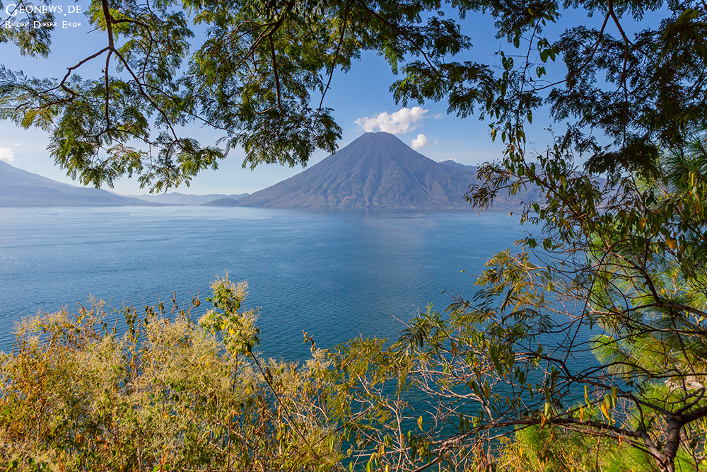 Der Lago de Atitlán ist nach dem Lago de Izabal mit ca. 150 km² der zweitgrößte See in Guatemala. Der See, wahrscheinlich eine vor ca. 85.000 Jahren eingestürzte Caldera eines Supervulkans, Los Chocoyos, liegt auf einer Meereshöhe von ca. 1600 m. Drei weitere, teils aktive Vulkane, der Tolimán, der Atitlán und der San Pedro, mit Höhen von ca. 3.100 bis 3.600 m, umgeben außerdem das nur augenscheinlich stille Gewässer.
