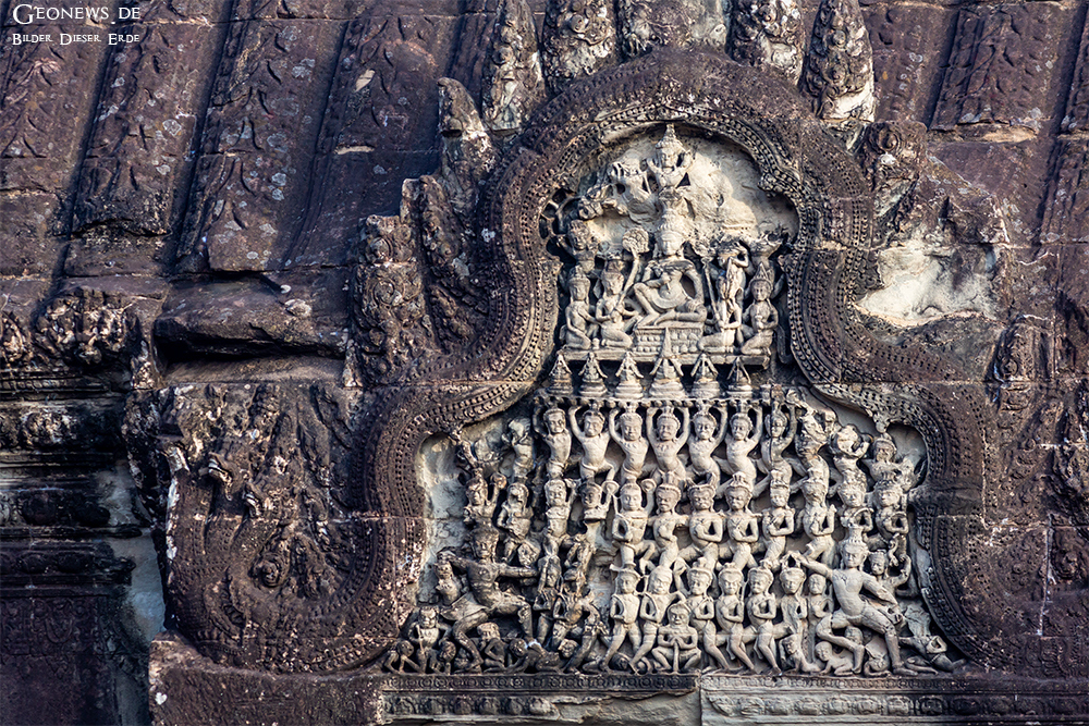 Die Devatas können am ehesten als Blumen tragende Götter bzw. Halbgötter beschrieben werden. Weiter sind in den vier Außengängen insgesamt acht Flachreliefs zu finden, die zu den längsten Darstellungen dieser Art auf der Welt gelten.