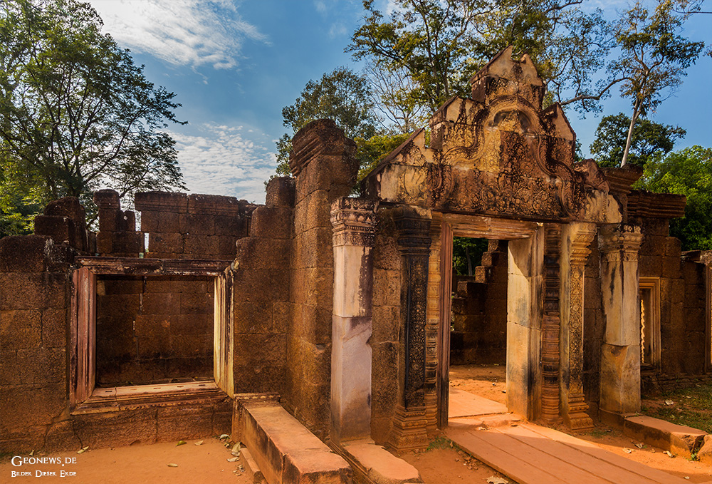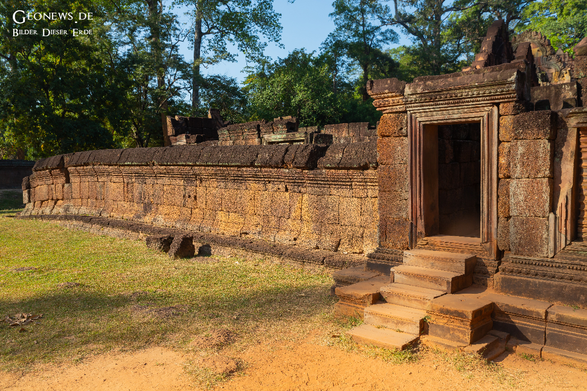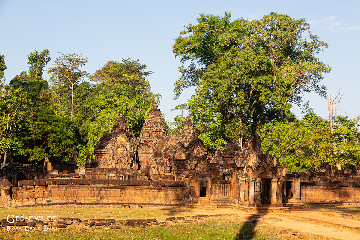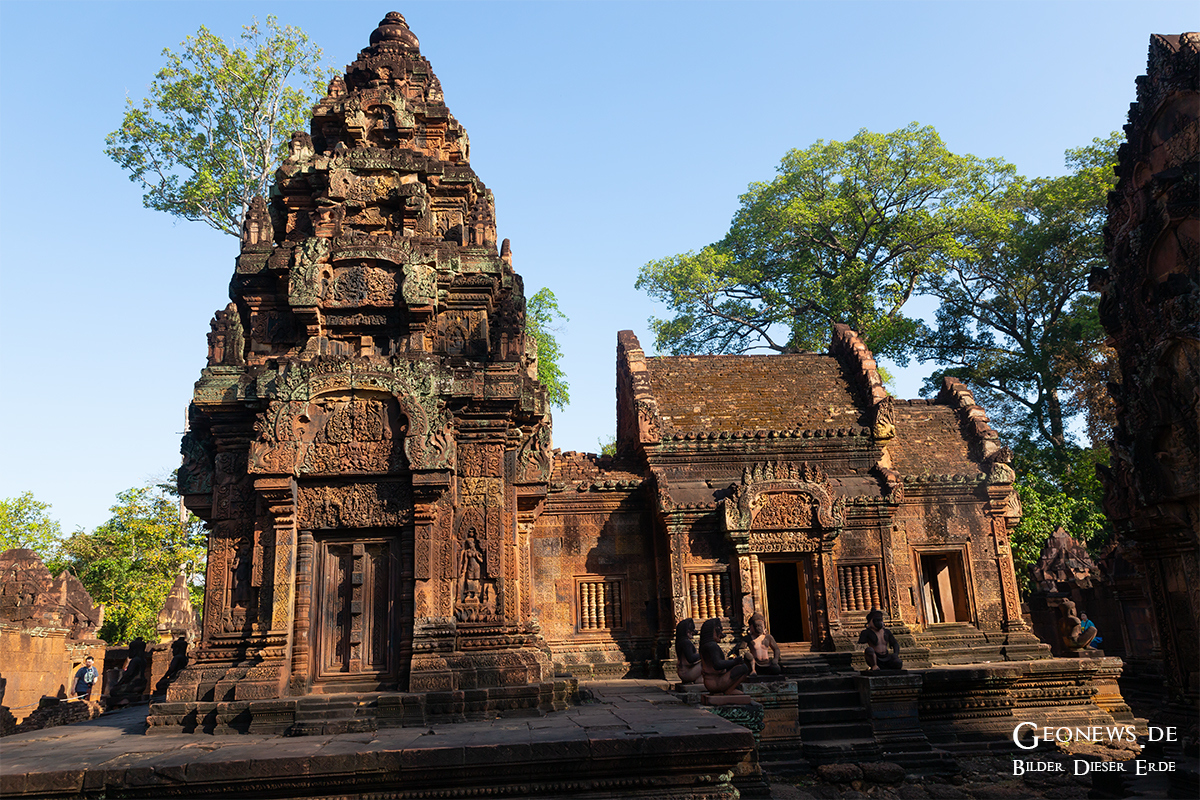 Die Tempelanlage Banteay Srei liegt ca. 25 km nördlich von Angkor Wat. Rajendravarman II. erbaute die Tempelanlage bereits im 10. Jahrhundert im hinduistischen Stil zu Ehren des Gottes Shiva. Die Tempelanlage gilt aufgrund der kunstvollen Ornamentik als eine der schönsten Bauwerke.