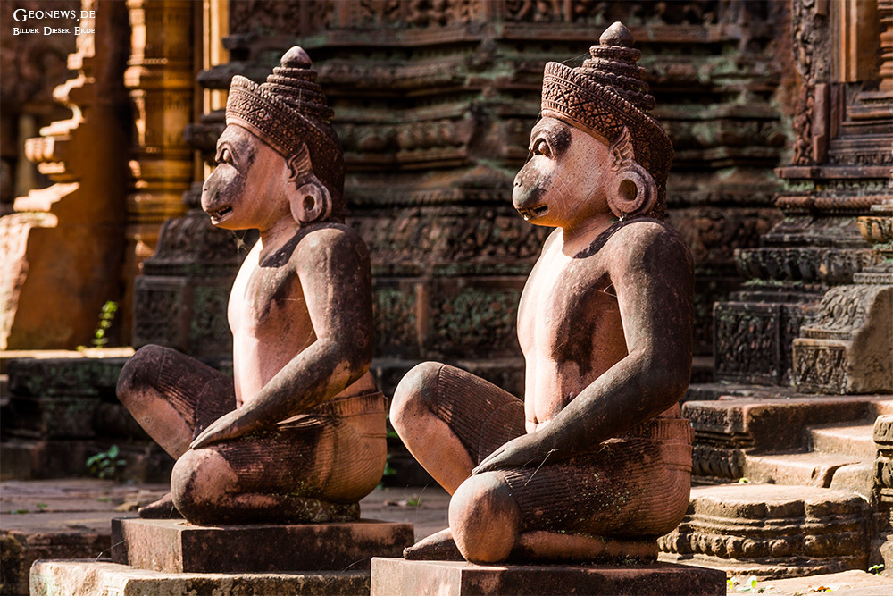 Banteay Srei bedeutet Zitatelle der Frauen bzw. der Schönheit und wird deshalb auch als Frauentempel bezeichnet. Die Tempelanlage wurde größtenteils aus rosafarbenem Sandstein erbaut, der sich besonders zur Herstellung der kunstvollen Ornamentik eignete.