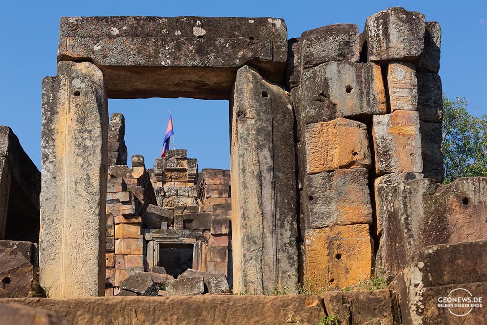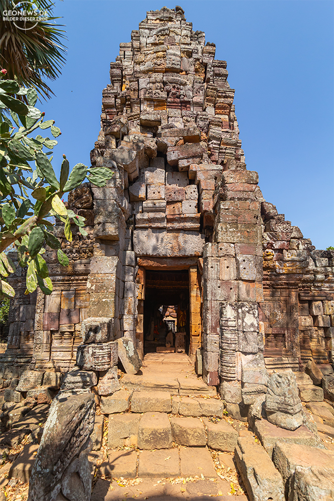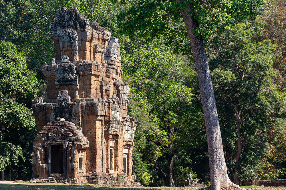 Der einzige Tempel, der in seinem Originalzustand erhalten wurde, ist der Ta Prohm. Überall gibt es noch eingestürzte Mauern, Steinblöcke versperren den Weg und die Würgefeigen und die Thitpok-Bäume haben das Mauerwerk weiterhin mehr als fest im Griff.