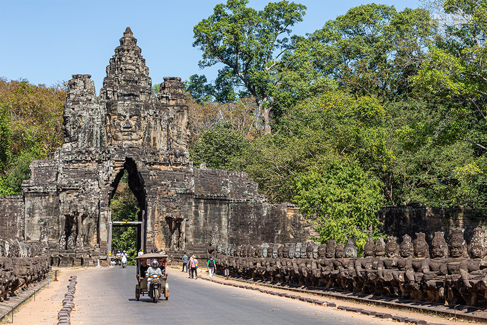 Der Bayon ‑Tempel ist neben dem Angkor Wat die größte und beeindruckendste Tempelanlage in Angkor. Der Tempel wurde im 12 bis 13. Jahrhundert von Jayavarman VII erbaut. Die Tempelanlage liegt im Zentrum der Stadt Angkor. Die Tempelanlage kann über eine der vier Brücken, über die man in die Stadt Angkor gelangt, erreicht werden.