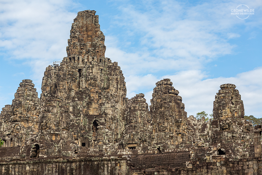 Auf fast allen Türmen des Tempels finden sich Gesichtszüge, die oft dem Erbauer, Jayavarman VII., zugeordnet werden. Es ist aber wahrscheinlicher, dass hier die lächelnden Gesichter den Bodhisattva Lokeshvara darstellt werden.
