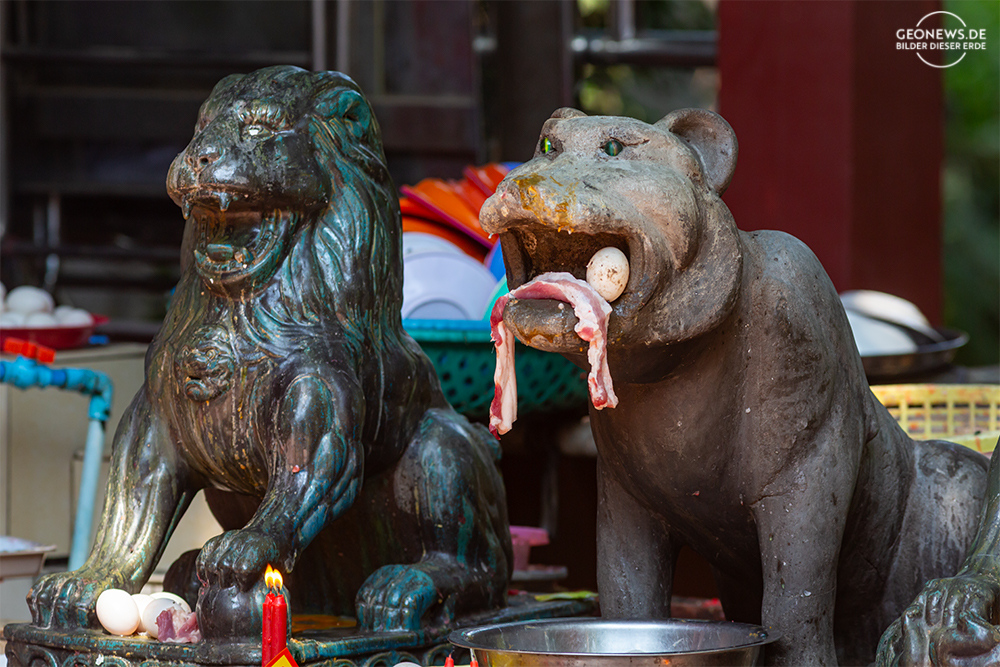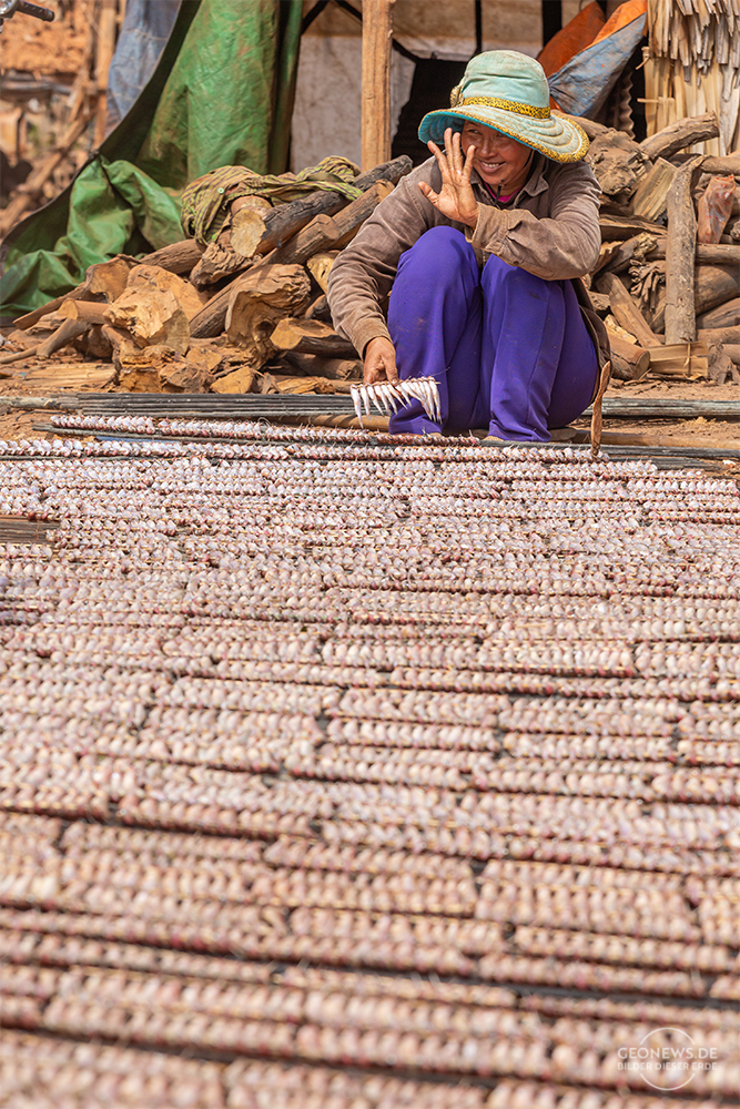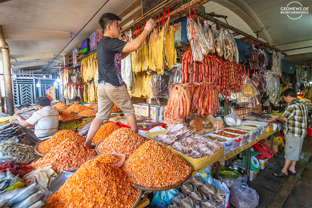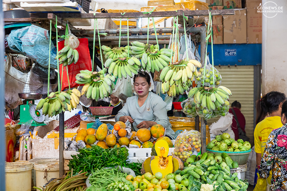 Phnom Penh ist die Hauptstadt von Kambodscha und liegt direkt am Zusammenfluss des Mekong und des Tonle-Sap. Der Mekong fließt dann schließlich in einem großen Delta, nachdem der Kambodscha durchquert hat, in Vietnam ins Südchinesische Meer. Vor allem der französische Kolonialstil prägt das Stadtbild von Battambang. Besonders sticht hier der heutige Zentralmarkt, der Phsar Thmey, als einzigartiges Art-Déco-Gebäude heraus, aber auch die Khmer prägten das Bild der Stadt. In der Markthalle kann man so ziemlich alles kaufen, was das Herz gegehrt und der Geldbeutel hergibt. Von kostbarem Schmuck bis zu Gemüse und Fleisch wird dort alles angeboten.