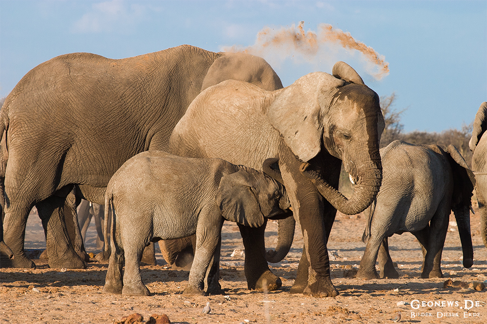 Der Etoscha National Park liegt im Norden von Namibia und umfasst ca. 23.000 km² an Schutzfläche. Nach der Sprache des dort lebenden Volkes, der Ovambo, bedeutet Etoscha „großer weißer Ort“. Die aus einem langsam ausgetrockneten See entstandene Salzpfanne wird durch diese Übersetzung sehr gut beschrieben.