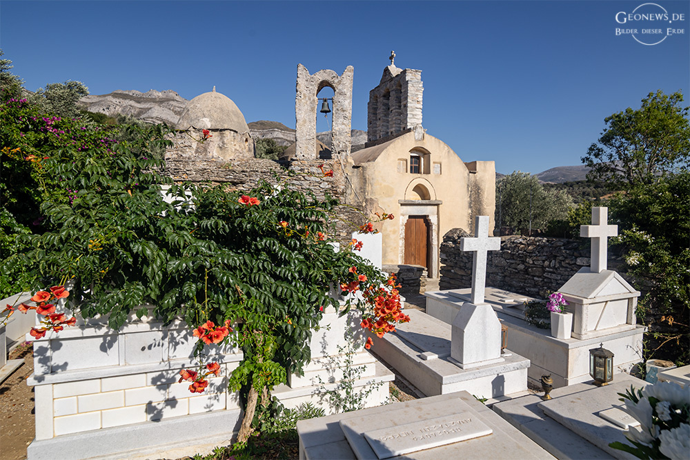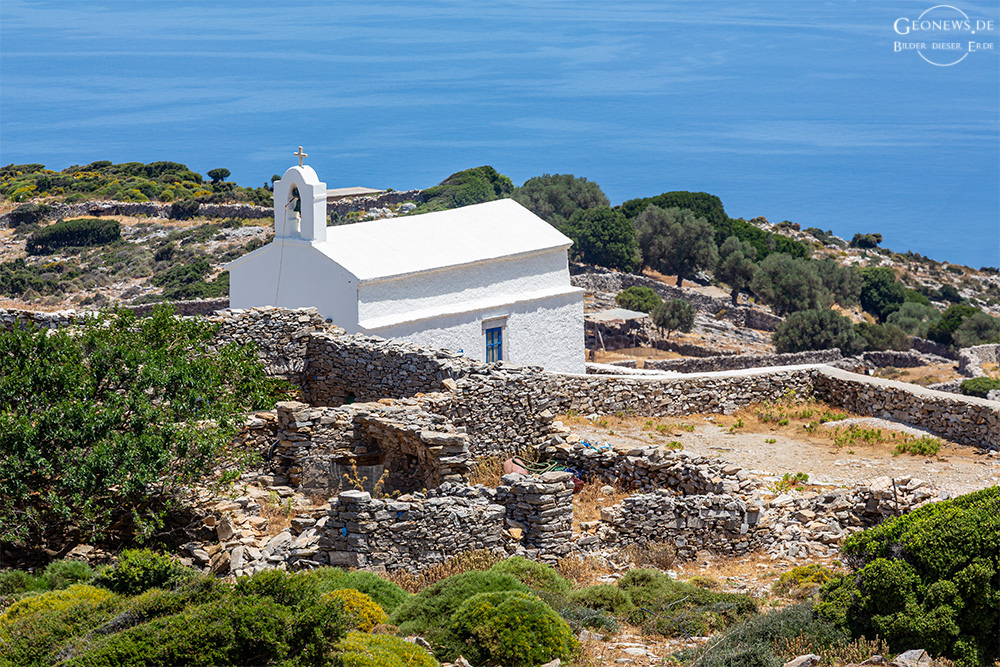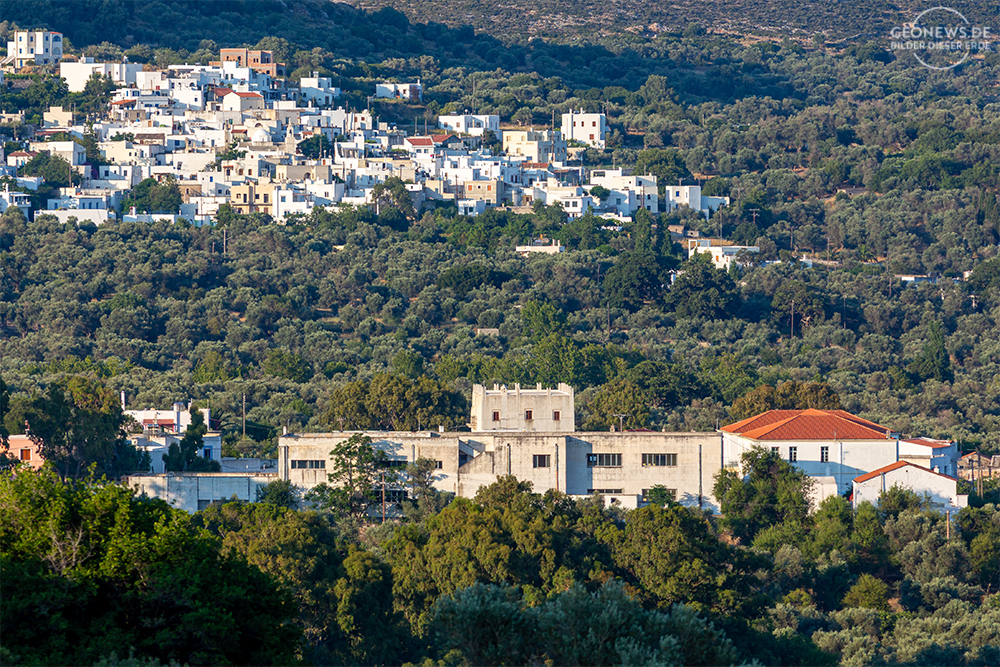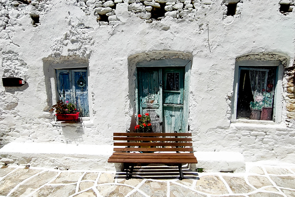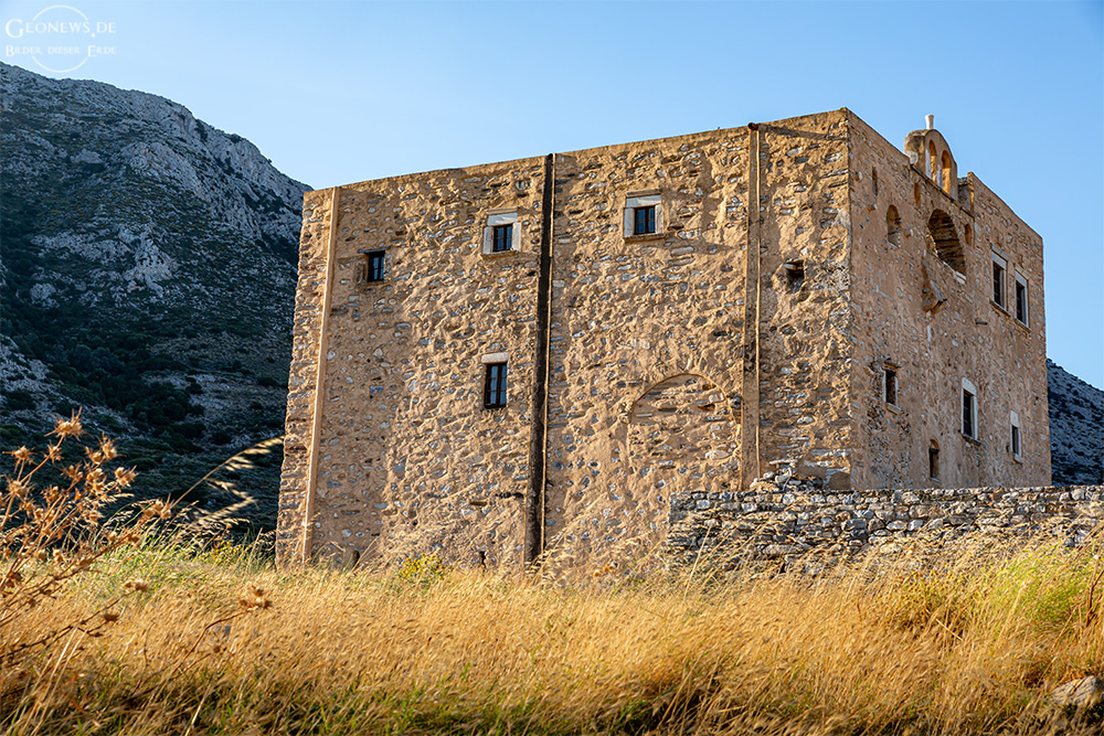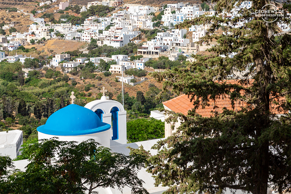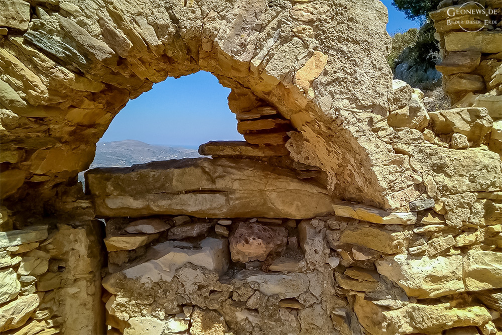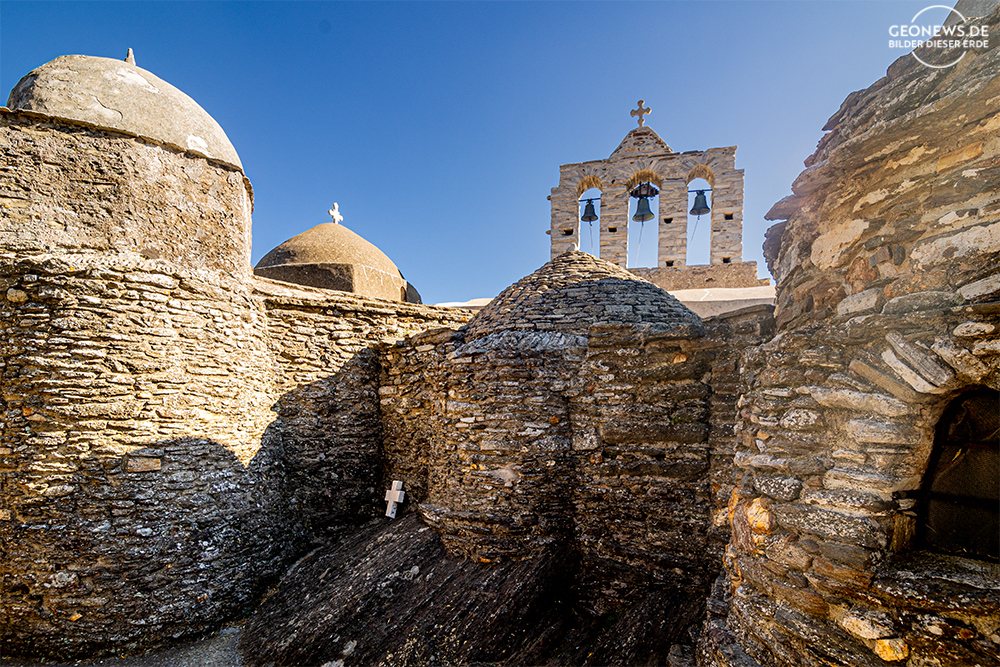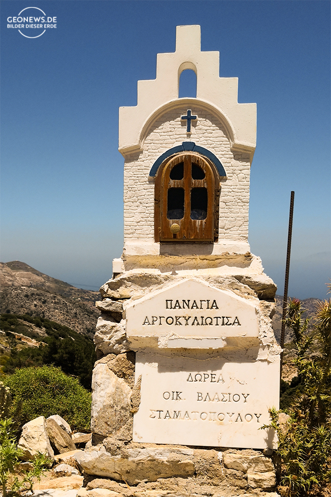 Apiranthos ist ein hoch in den Bergen gelegenes Dorf. Es ist liegt ca. 30 km von der Inselhauptstadt Chora entfernt und auf einer Höhe von ca. 600 m über Meeresniveau. Anders als bei den Dörfern in den Tiefebenen von Naxos herrscht hier keine weiße, kubische Bauweise vor. Die alten Häuser sind hier eher aus Bruchsteinen gebaut und dann weiß angestrichen. Natürlich hat auch Apiranthos einen Wohnturm, den Pyrgos Zevgoli. Weiter gibt es in Apiranthos drei kleiner Museen. Ein erstes Museumzeigt eine gute Übersicht von der Geologie von Naxos mit den typischen Gesteinen und einigen Fossilien. Im Archäologische Museum wird eine Vielzahl von Objekten aus der Stein- und Bronzezeit ausgestellt. Im Folkore Museum erfährt man schließlich dann etwas über die Lebensweise der Bewohner in den Bergdörfern.