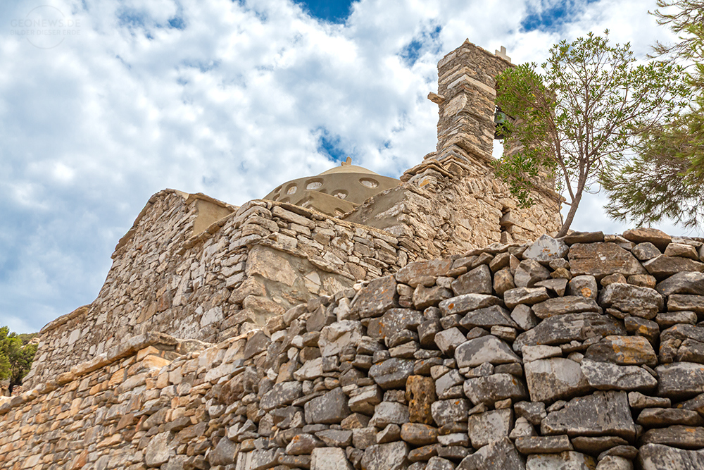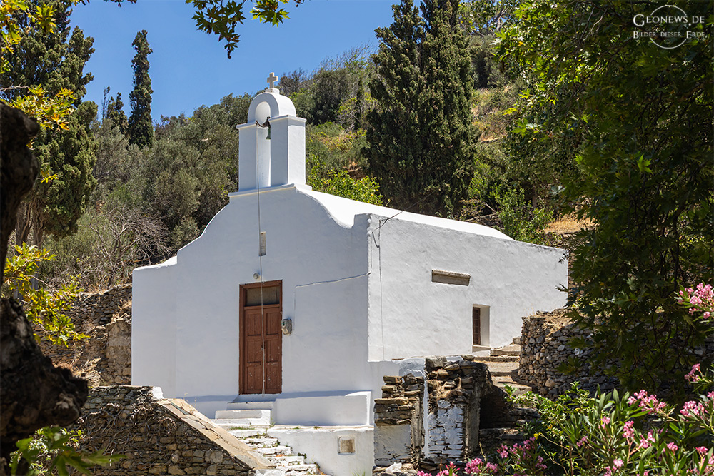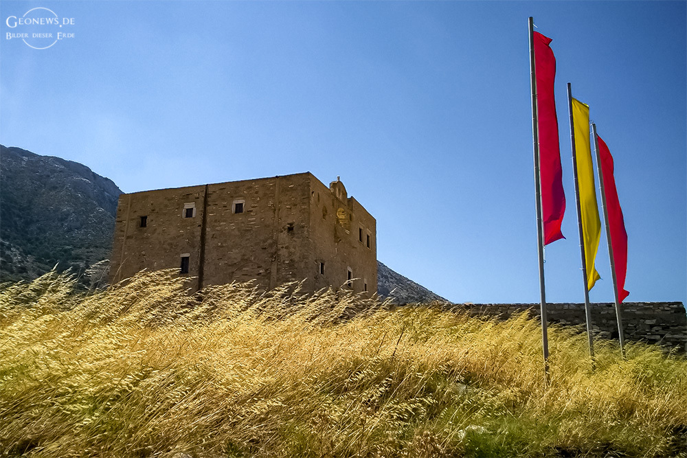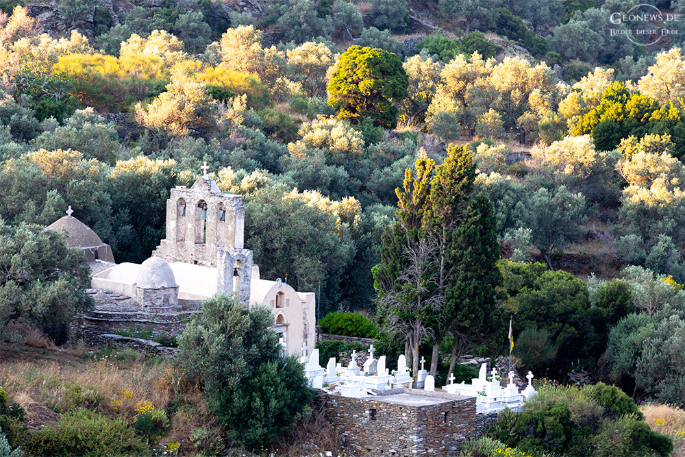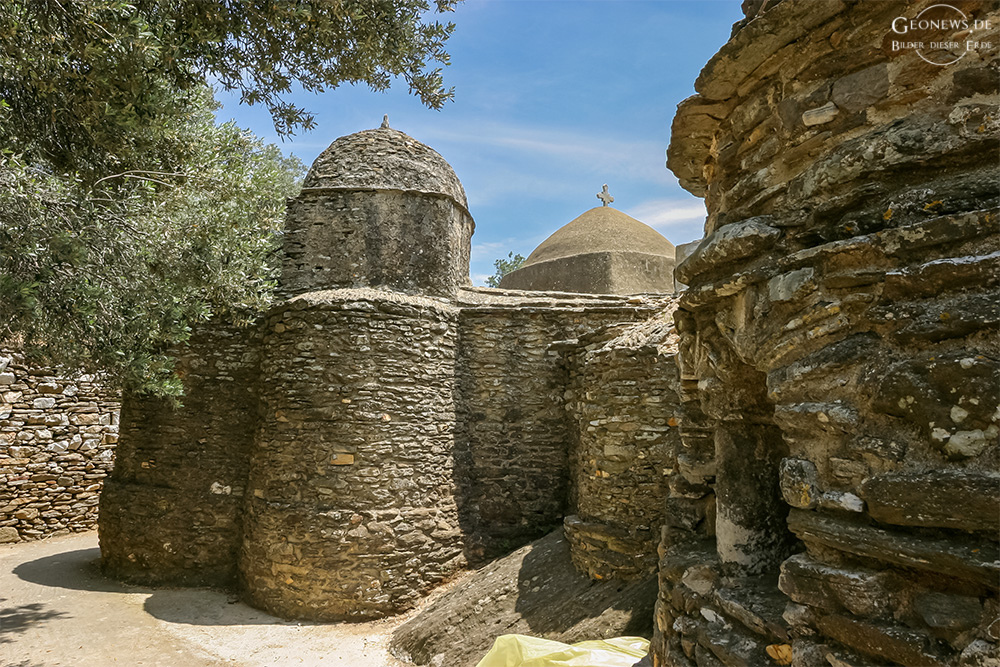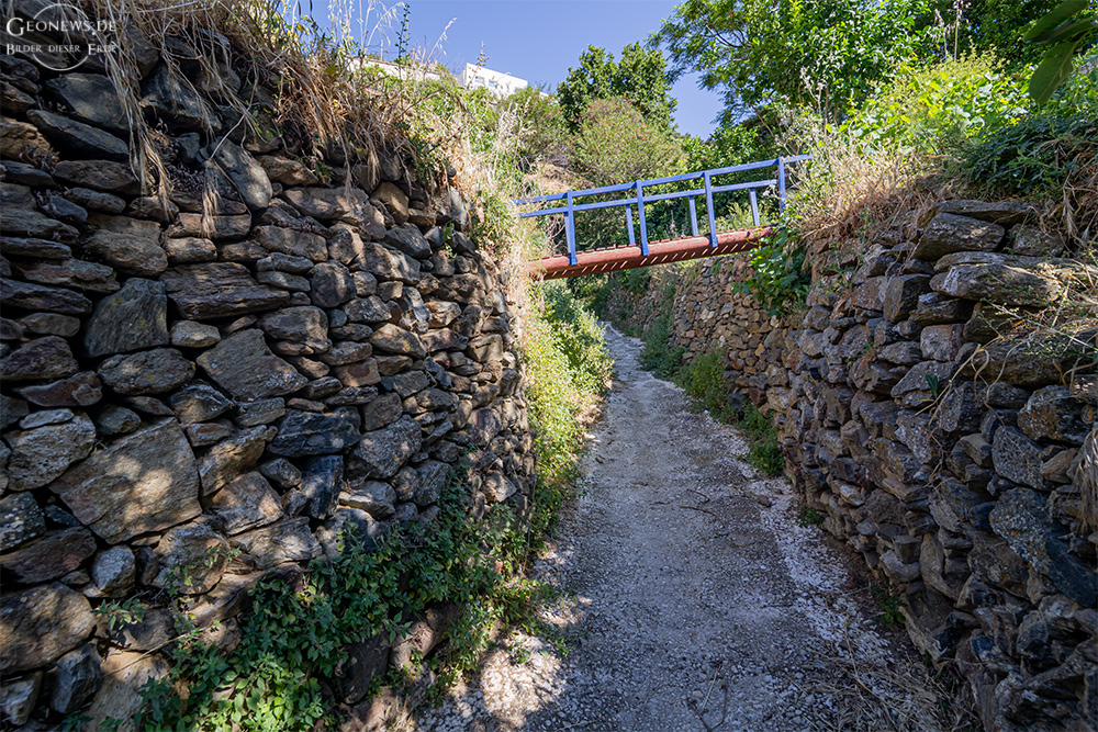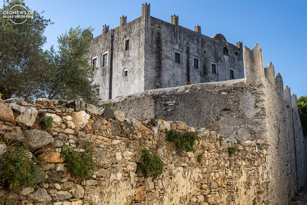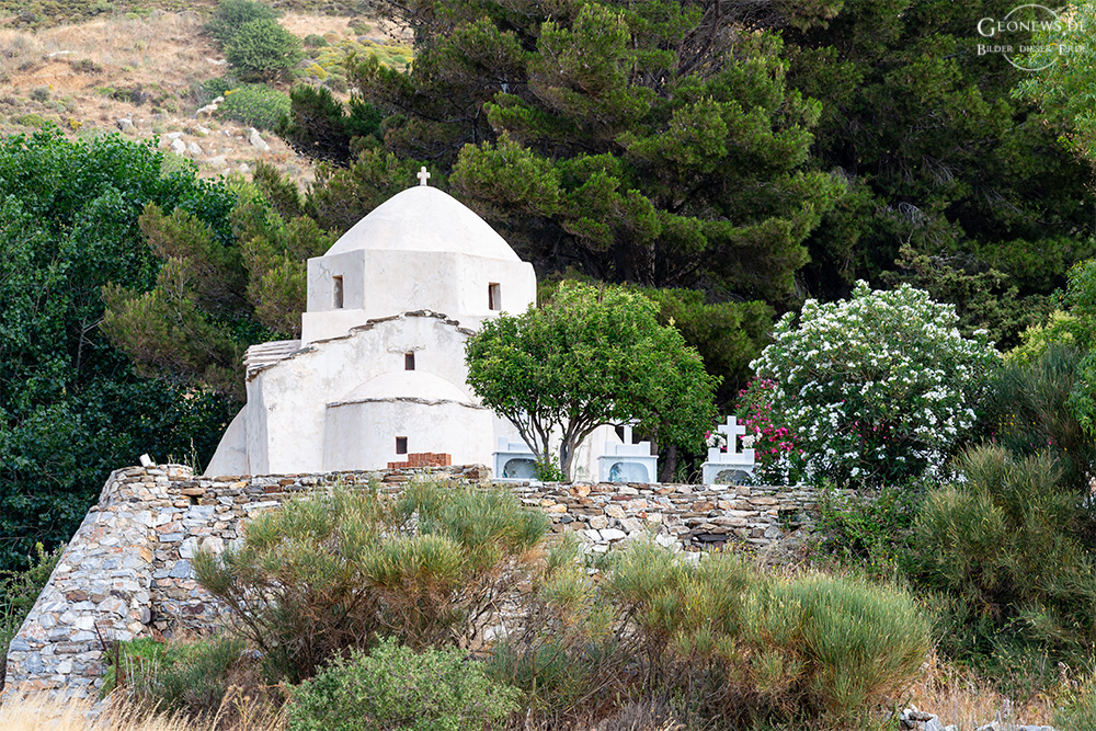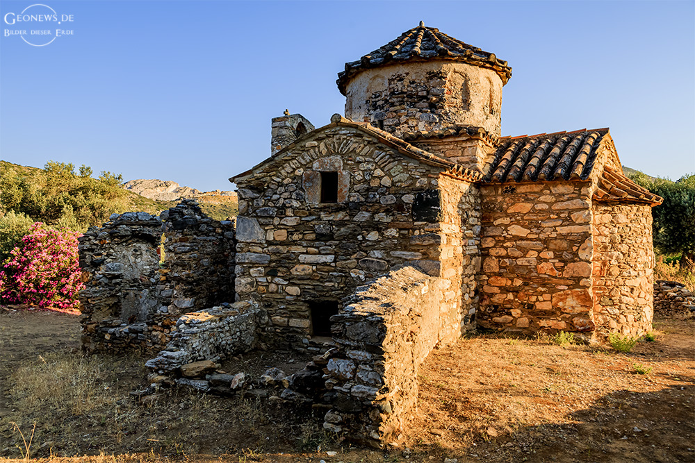 Apiranthos ist ein hoch in den Bergen gelegenes Dorf. Es ist liegt ca. 30 km von der Inselhauptstadt Chora entfernt und auf einer Höhe von ca. 600 m über Meeresniveau. Anders als bei den Dörfern in den Tiefebenen von Naxos herrscht hier keine weiße, kubische Bauweise vor. Die alten Häuser sind hier eher aus Bruchsteinen gebaut und dann weiß angestrichen. Natürlich hat auch Apiranthos einen Wohnturm, den Pyrgos Zevgoli. Weiter gibt es in Apiranthos drei kleiner Museen. Ein erstes Museumzeigt eine gute Übersicht von der Geologie von Naxos mit den typischen Gesteinen und einigen Fossilien. Im Archäologische Museum wird eine Vielzahl von Objekten aus der Stein- und Bronzezeit ausgestellt. Im Folkore Museum erfährt man schließlich dann etwas über die Lebensweise der Bewohner in den Bergdörfern.