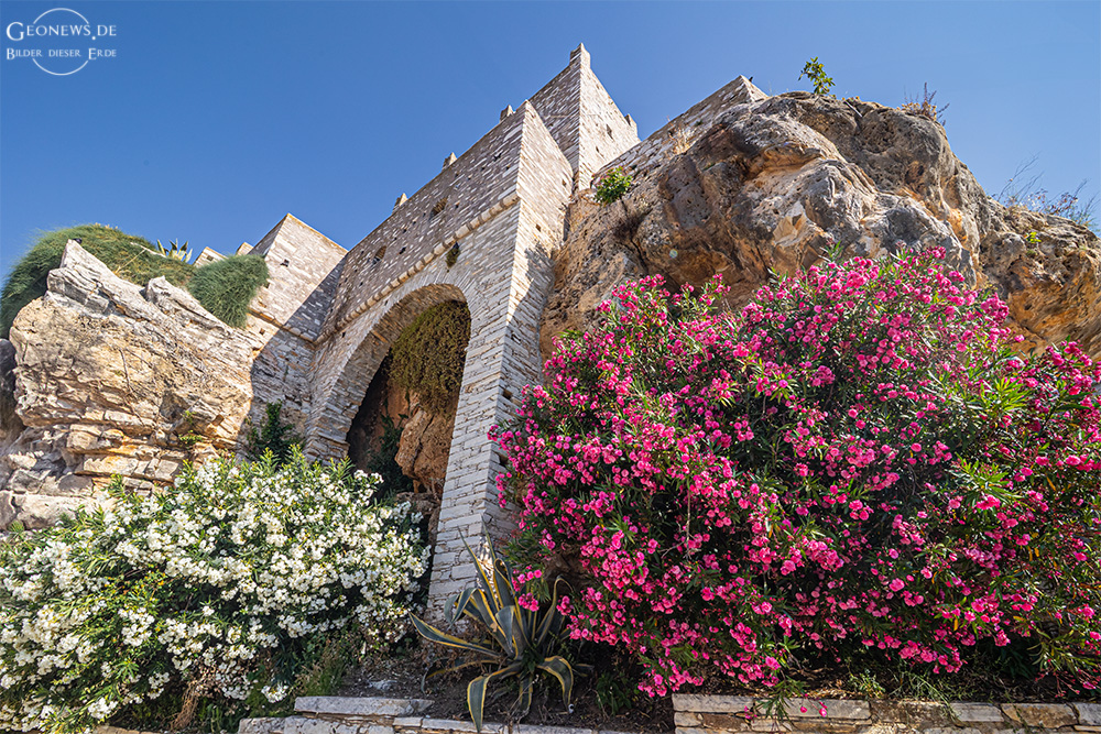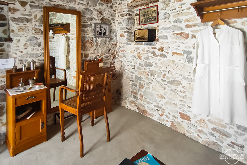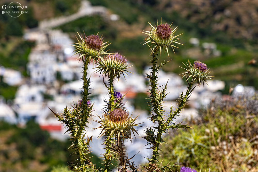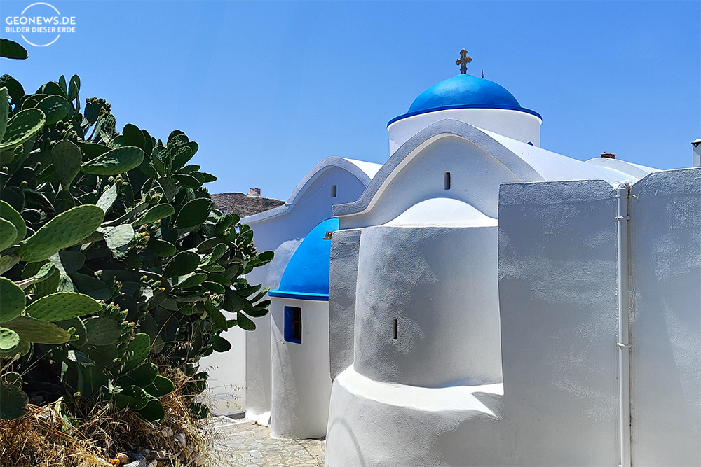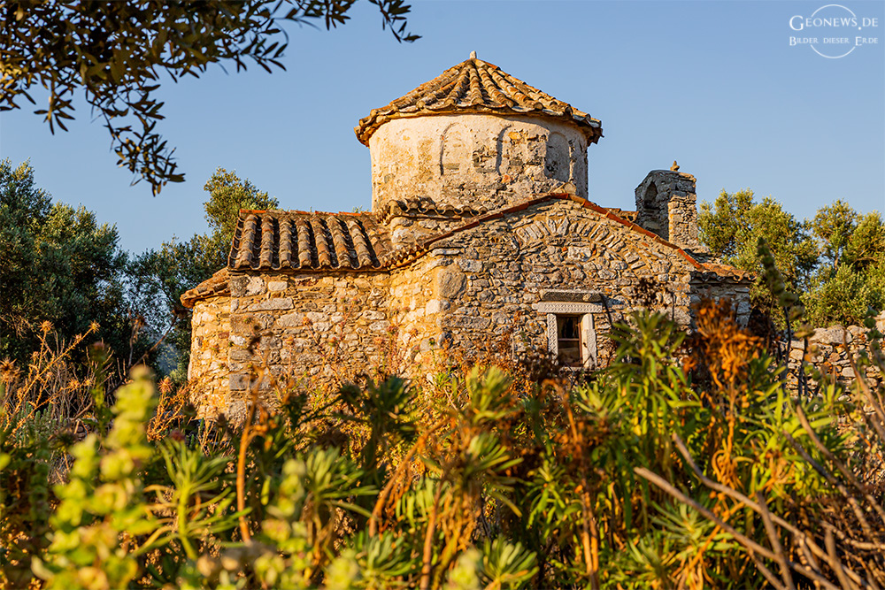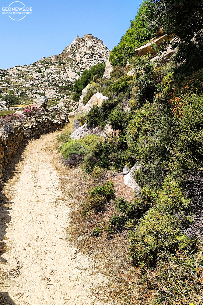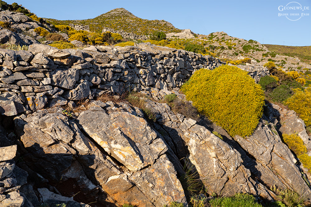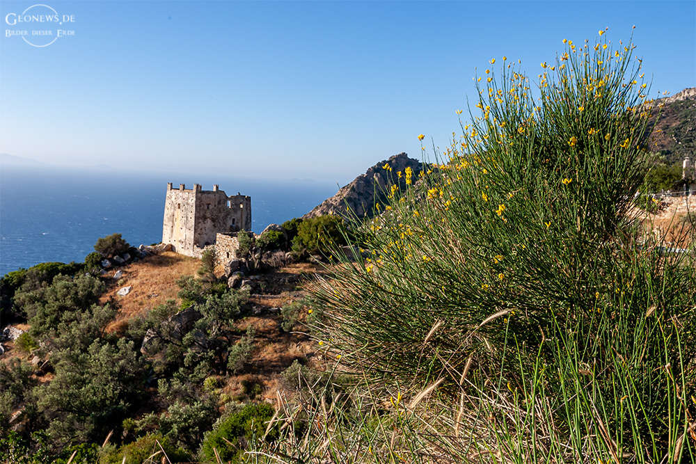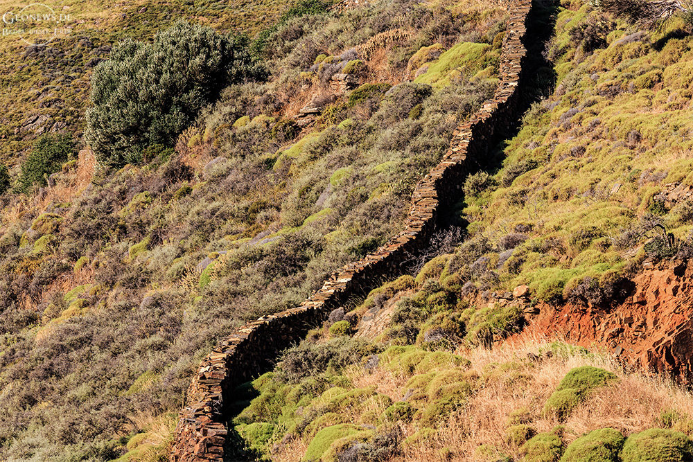 Apiranthos ist ein hoch in den Bergen gelegenes Dorf. Es ist liegt ca. 30 km von der Inselhauptstadt Chora entfernt und auf einer Höhe von ca. 600 m über Meeresniveau. Anders als bei den Dörfern in den Tiefebenen von Naxos herrscht hier keine weiße, kubische Bauweise vor. Die alten Häuser sind hier eher aus Bruchsteinen gebaut und dann weiß angestrichen. Natürlich hat auch Apiranthos einen Wohnturm, den Pyrgos Zevgoli. Weiter gibt es in Apiranthos drei kleiner Museen. Ein erstes Museumzeigt eine gute Übersicht von der Geologie von Naxos mit den typischen Gesteinen und einigen Fossilien. Im Archäologische Museum wird eine Vielzahl von Objekten aus der Stein- und Bronzezeit ausgestellt. Im Folkore Museum erfährt man schließlich dann etwas über die Lebensweise der Bewohner in den Bergdörfern.