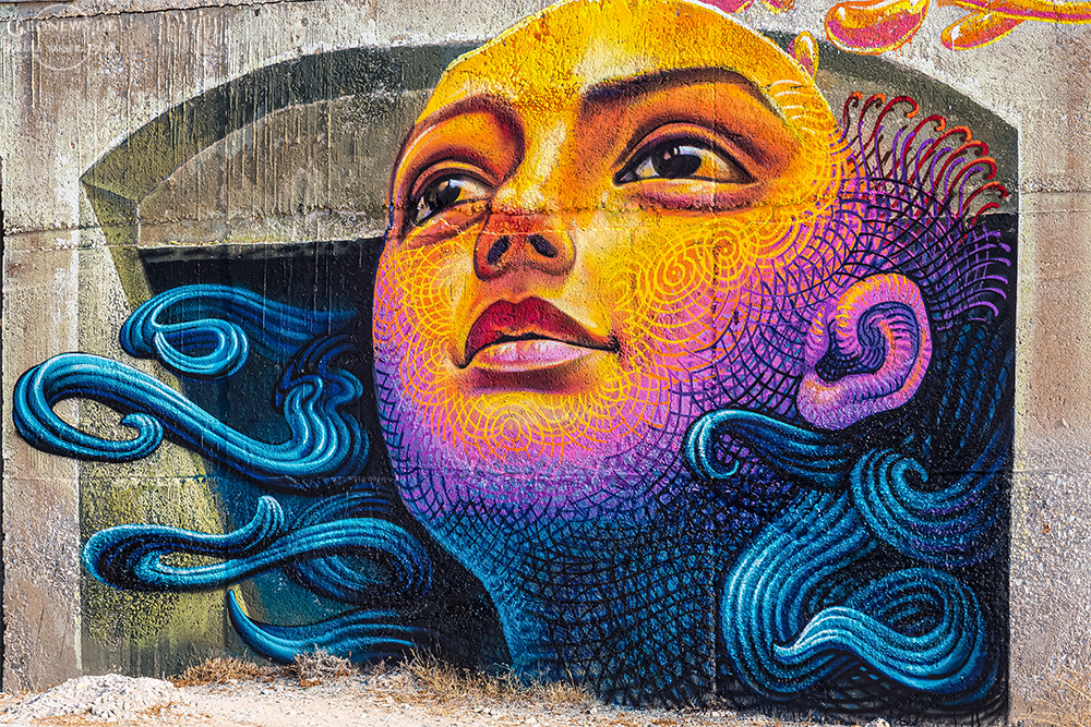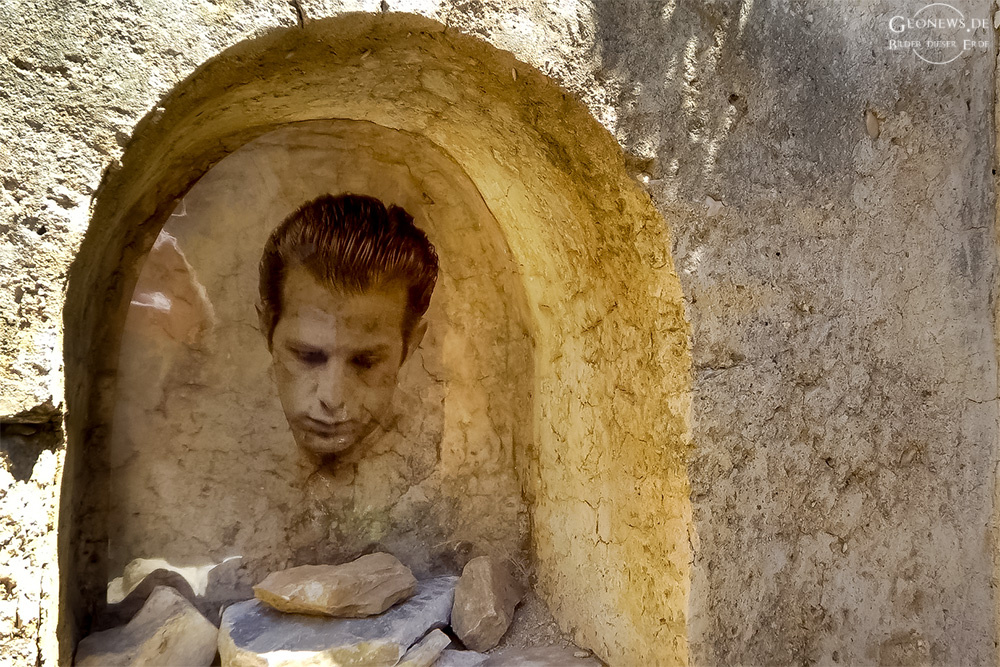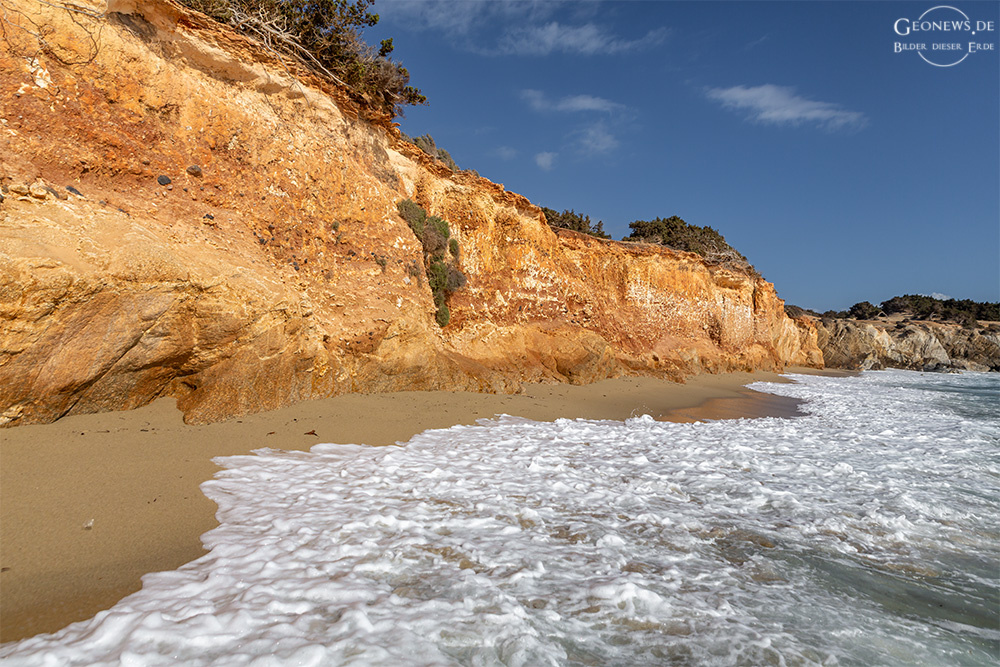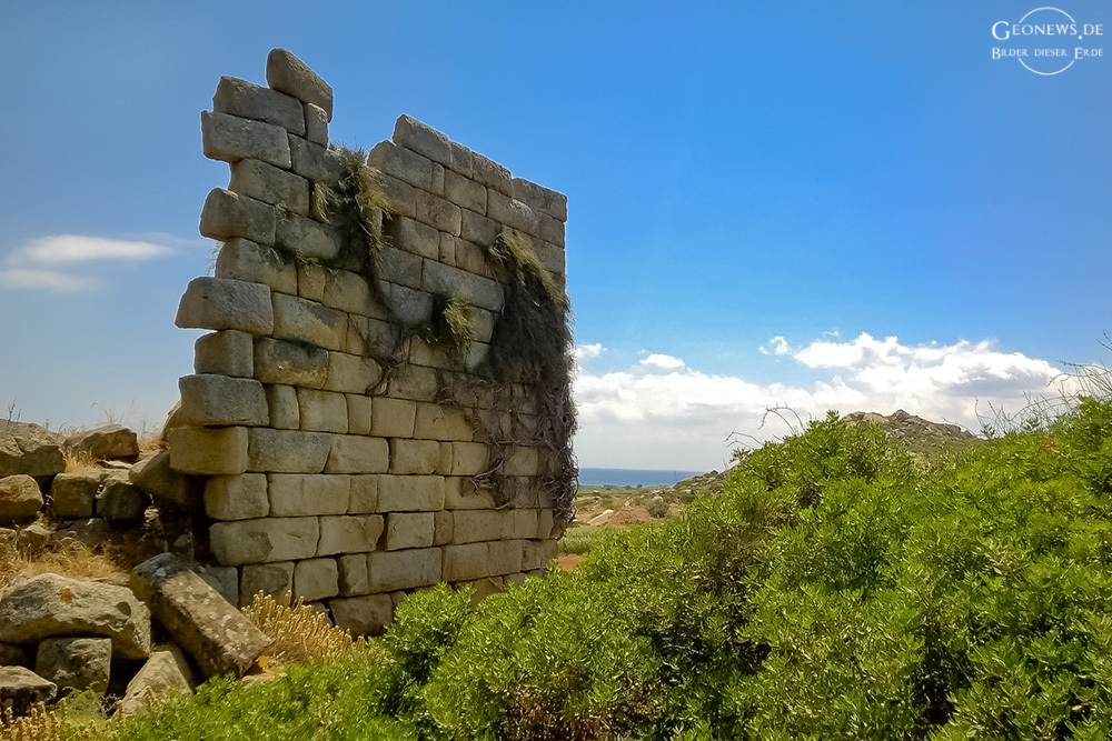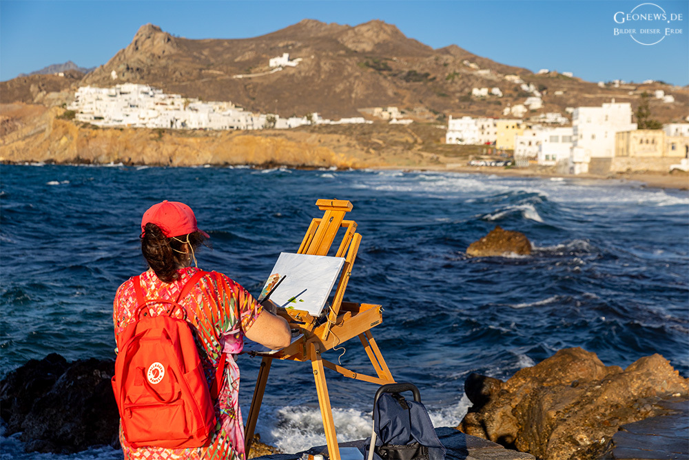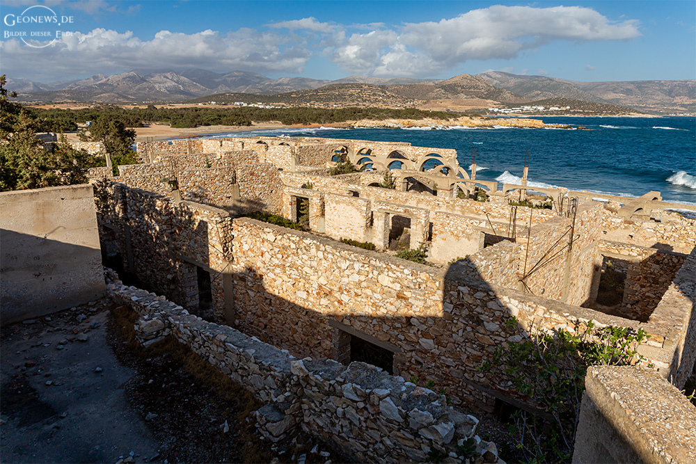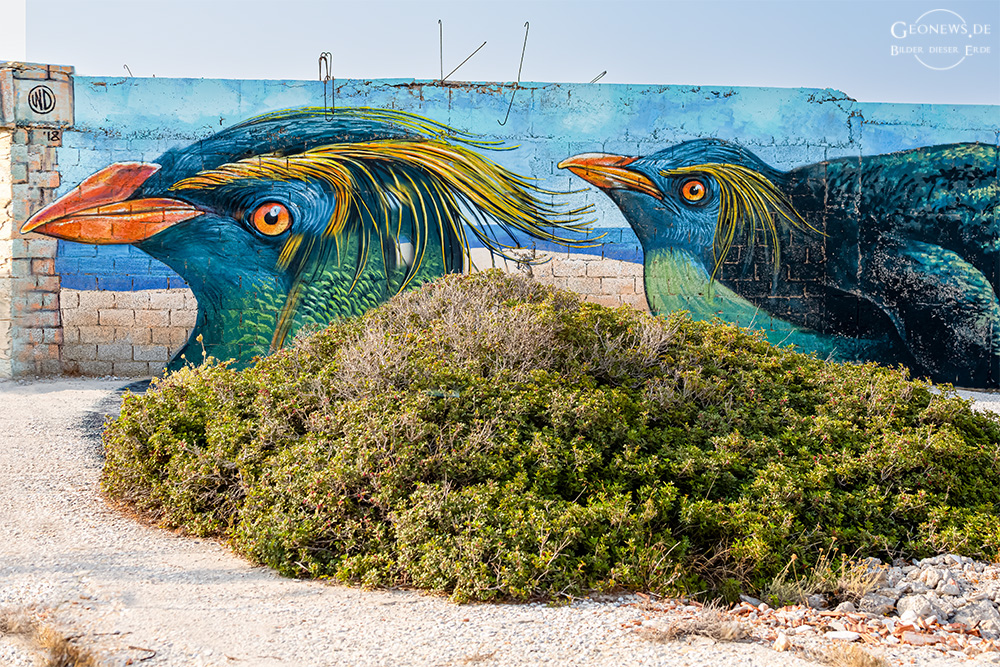 Sonnenschirmε und Liegestühle wird man dort vergeblich suchen, so dass selbst in der Hochsaison der Ruhesuchende ein stilles Plätzchen am Strand finden wird. An der Spitze des Cap Alykό befindet sich eine alte Hotelruine aus den siebziger Jahren des letzten Jahrhunderts. Der als Schwarzbau begonnen Hotelkomplex wurde aber niemals vollendet, da diese die naxiotischen Behörden gestoppt haben. Reste des Hotels bilden mittlerweilem eine pitureske Freiluftgalerie. Wild Drawing (WD) ein indonesischen Streetart Künstler, auch unter seinem griechischen Namen Skitsofrenis bekannt, begann ab dem Jahr 2018 die an sich tristen Ruinen, vor allem farblich besser in Szene zu setzen und erschuf innerhalb weniger Wochen eine VIlelzahl von Graffitis.
