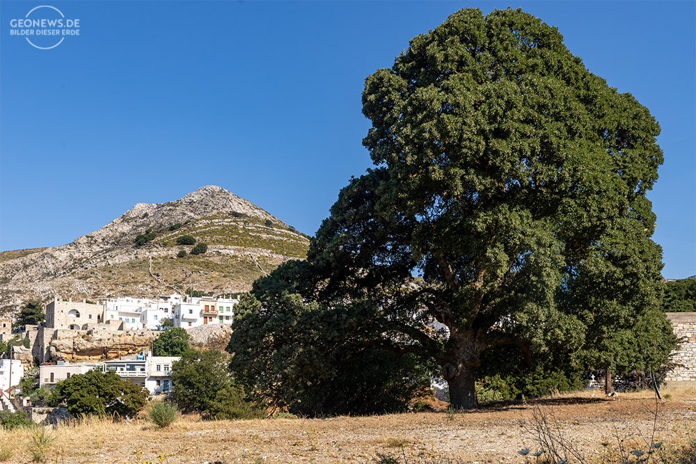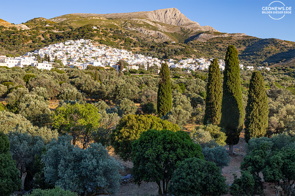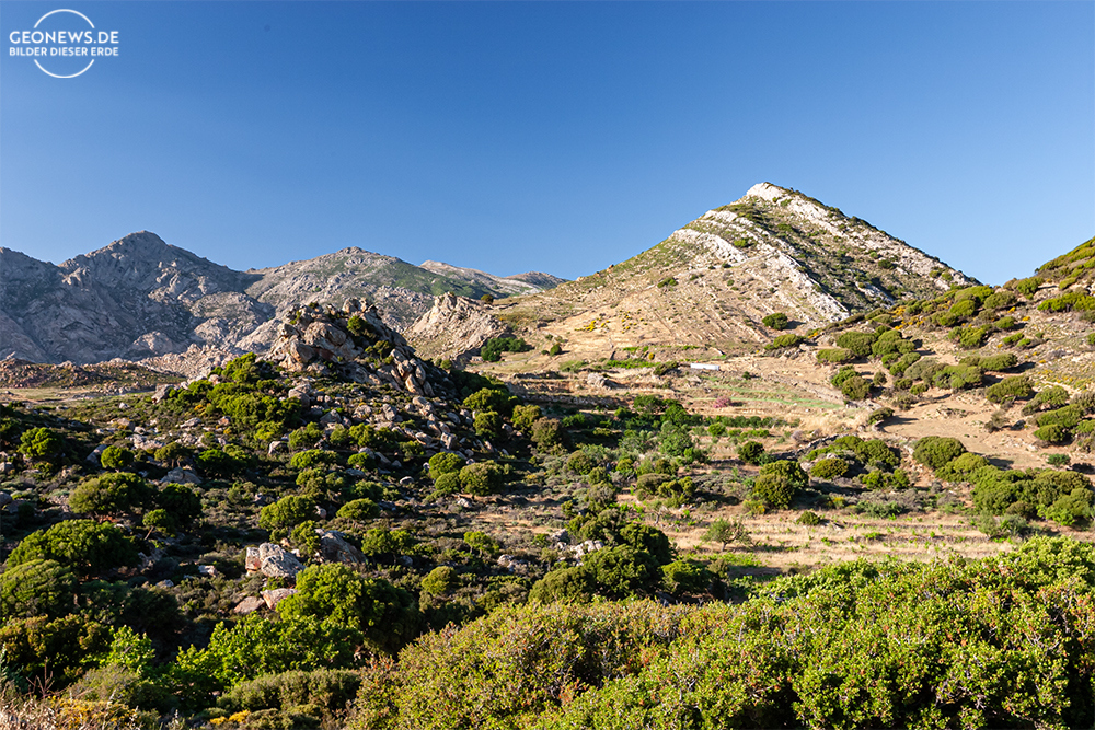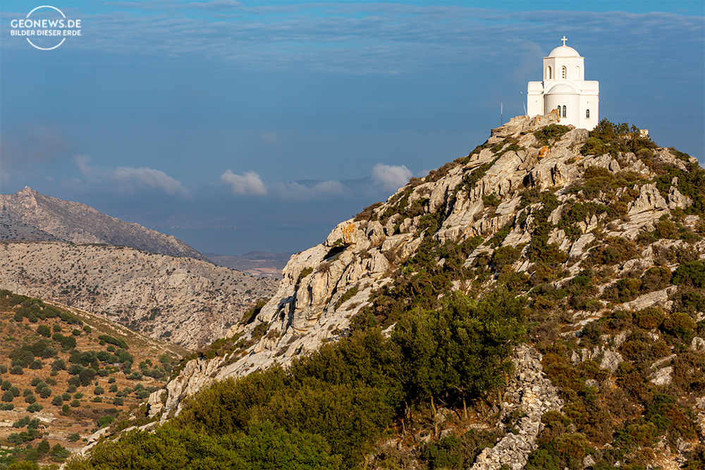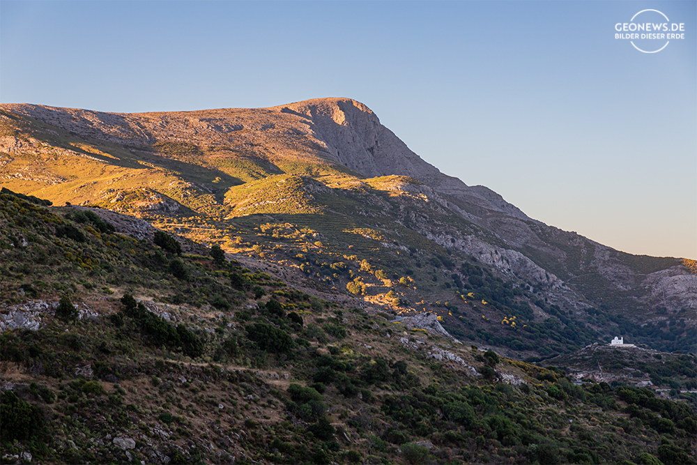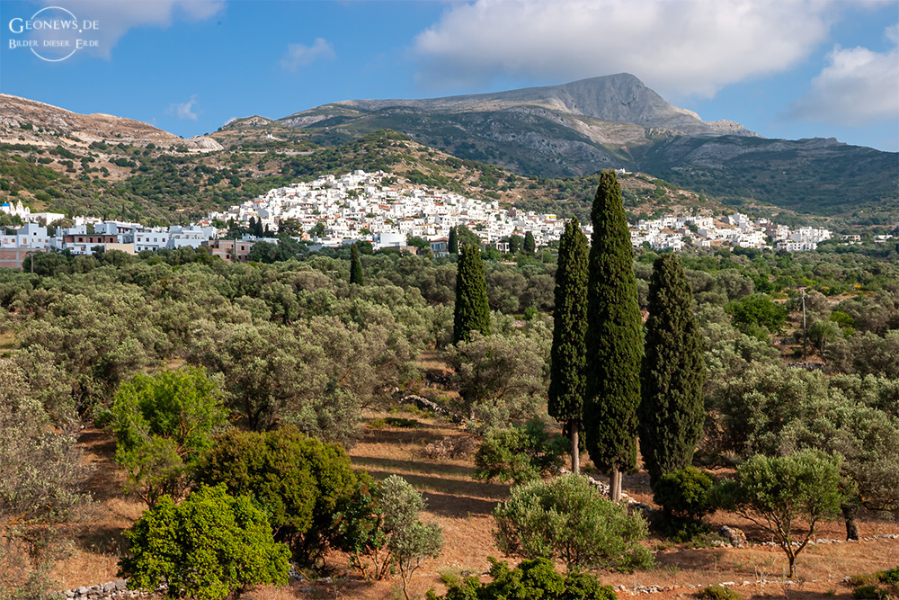 Die größte Kykladeninsel Naxos ist auch eine der größeren Inseln in der griechischen Ägäis. Höchste Erhebung auf der Insel mit dem aus Kalkstein bzw. Marmor bestehenden Bergmassiv Zas ist gleichzeitig auch der höchste Berg der gesamten Kykladeninselwelt mit knapp 1.000 m Meereshöhe. Von Zas kann man somit auch, vor allem bei gutem Wetter, die benachbarten Inseln, wie z.B. Amorgos sehen.