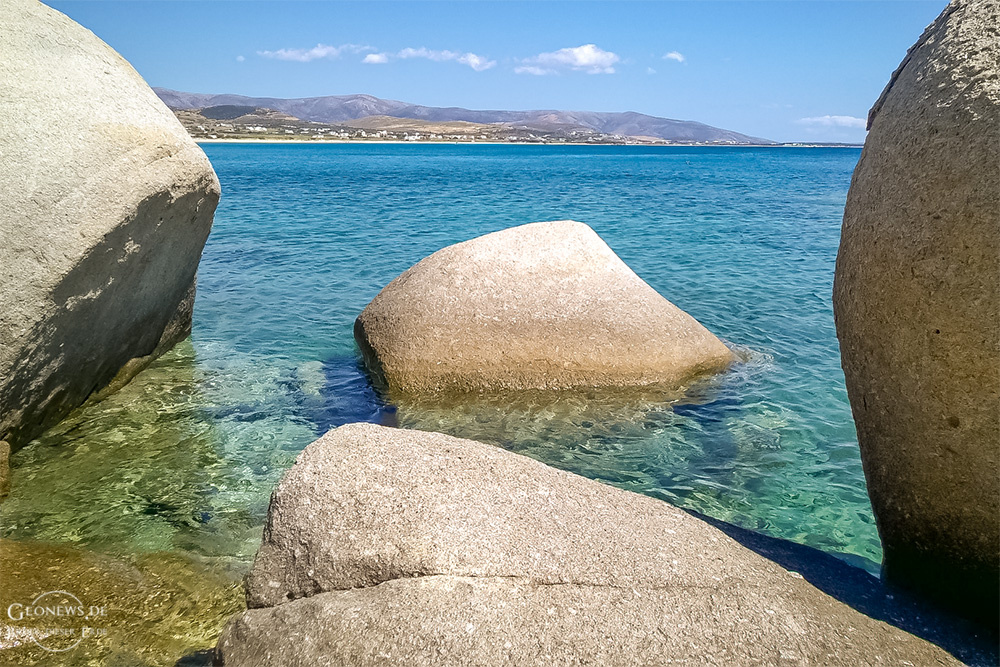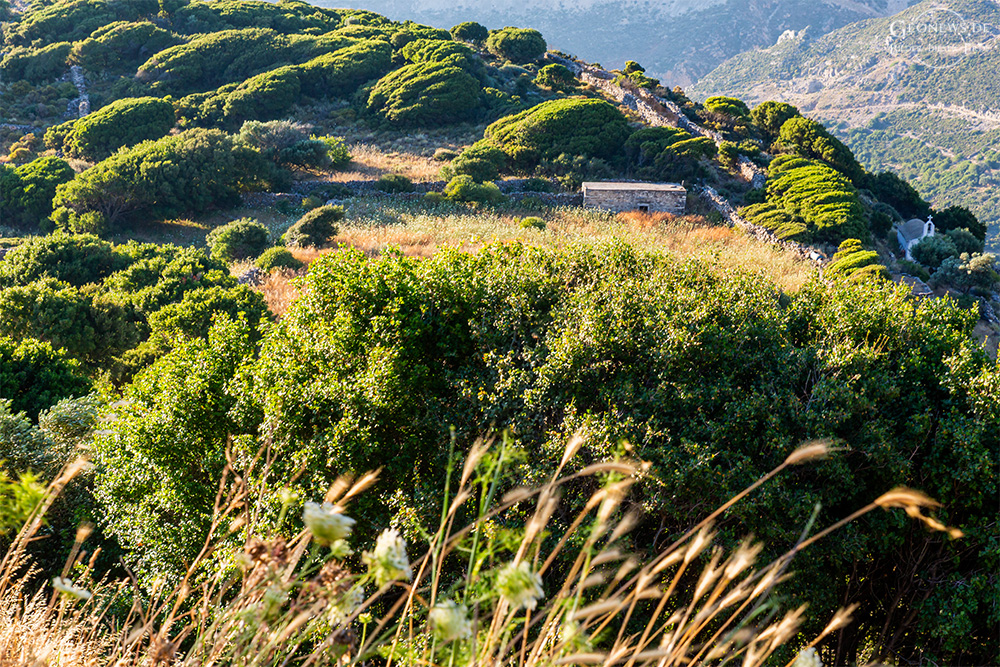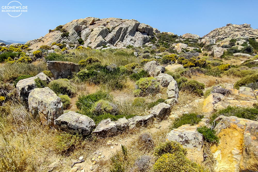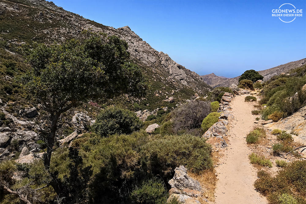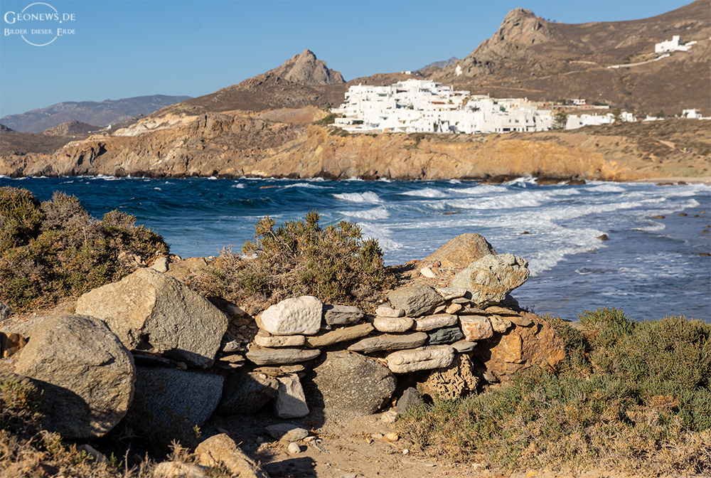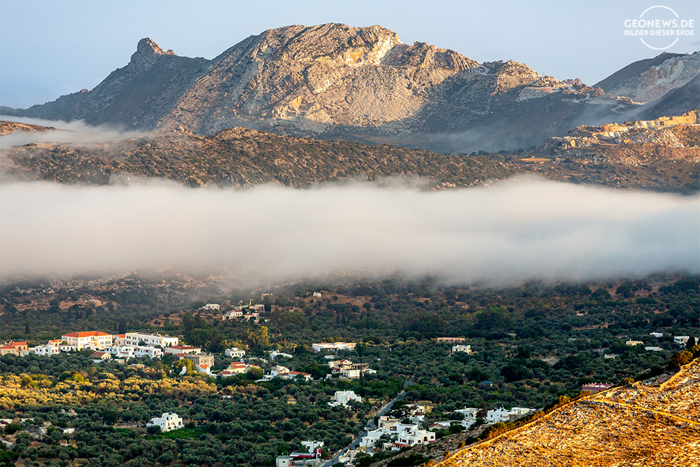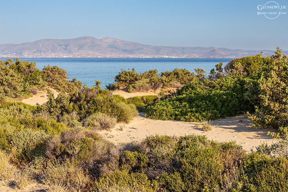 Die größte Kykladeninsel Naxos ist auch eine der größeren Inseln in der griechischen Ägäis. Höchste Erhebung auf der Insel mit dem aus Kalkstein bzw. Marmor bestehenden Bergmassiv Zas ist gleichzeitig auch der höchste Berg der gesamten Kykladeninselwelt mit knapp 1.000 m Meereshöhe. Von Zas kann man somit auch, vor allem bei gutem Wetter, die benachbarten Inseln, wie z.B. Amorgos sehen.