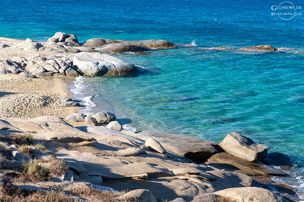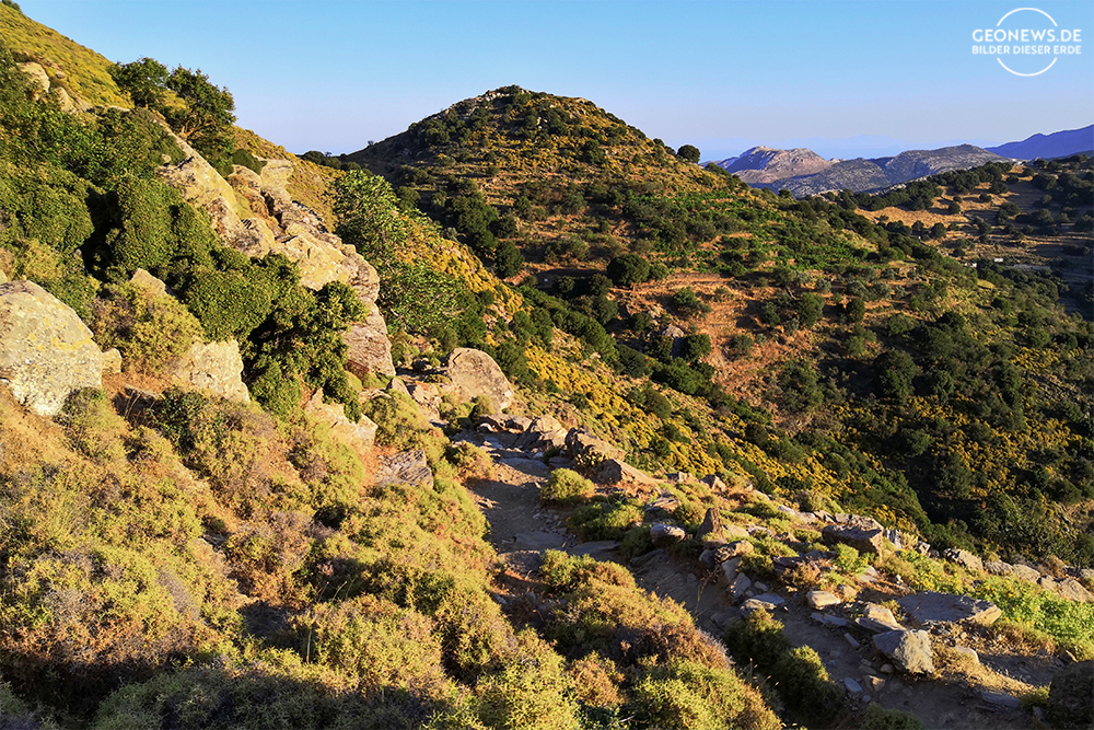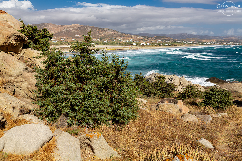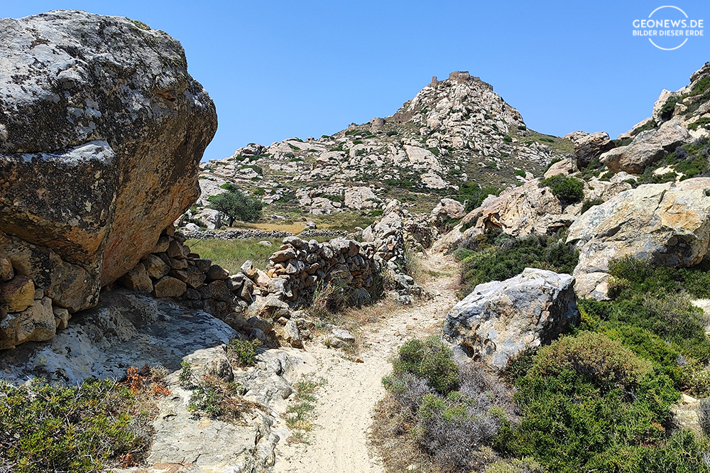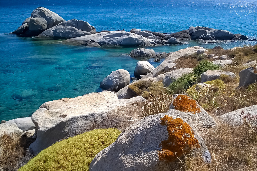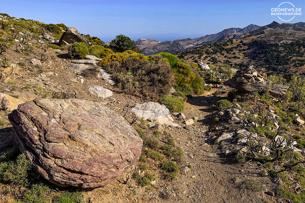 Die größte Kykladeninsel Naxos ist auch eine der größeren Inseln in der griechischen Ägäis. Höchste Erhebung auf der Insel mit dem aus Kalkstein bzw. Marmor bestehenden Bergmassiv Zas ist gleichzeitig auch der höchste Berg der gesamten Kykladeninselwelt mit knapp 1.000 m Meereshöhe. Von Zas kann man somit auch, vor allem bei gutem Wetter, die benachbarten Inseln, wie z.B. Amorgos sehen.