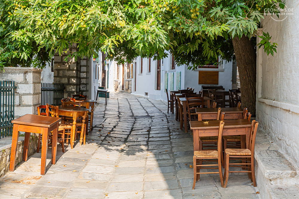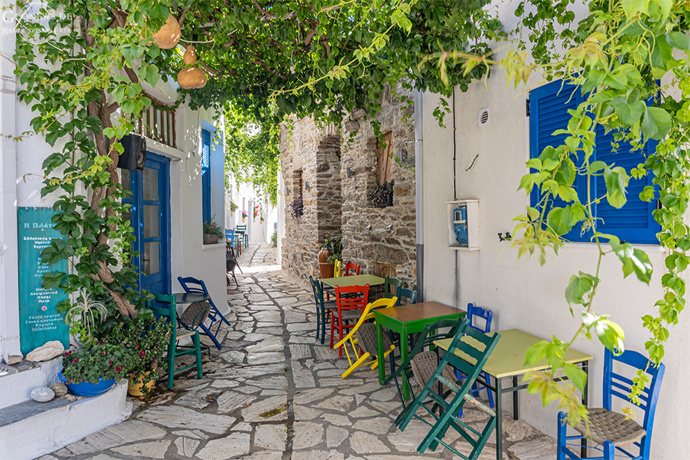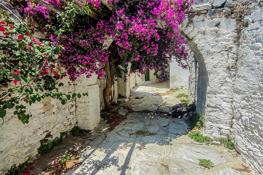 Die Ortschaft Kaloxylos ist wohl eines der schönsten Dörfer in der Tragea und auf Naxos. Abseits der Touristenströme nach Chalki und Filoti gelegen ist es somit noch ein echter Geheimtipp, um etwas Abstand von der Hektik des Tourismus zu gewinnen. Alte, traditionelle, weiß getünchte Häuser mit kleinen Gärten voller bunter Blumen, Bögen und grafischen Gehwegen bilden eine unglaublich schöne Kulisse und laden zum Schlendern durch das Dorf ein. An jeder Ecke kann man etwas Neues entdecken. Mitten im Ort befindet sich eine wunderschön renovierte Ölmühle, in er auch Führungen angeboten werden. Auch gibt es in Kaloxylos ein privat geführtes Folkloremuseum, das Einblick in das Leben der Dorfbewohner gibt.