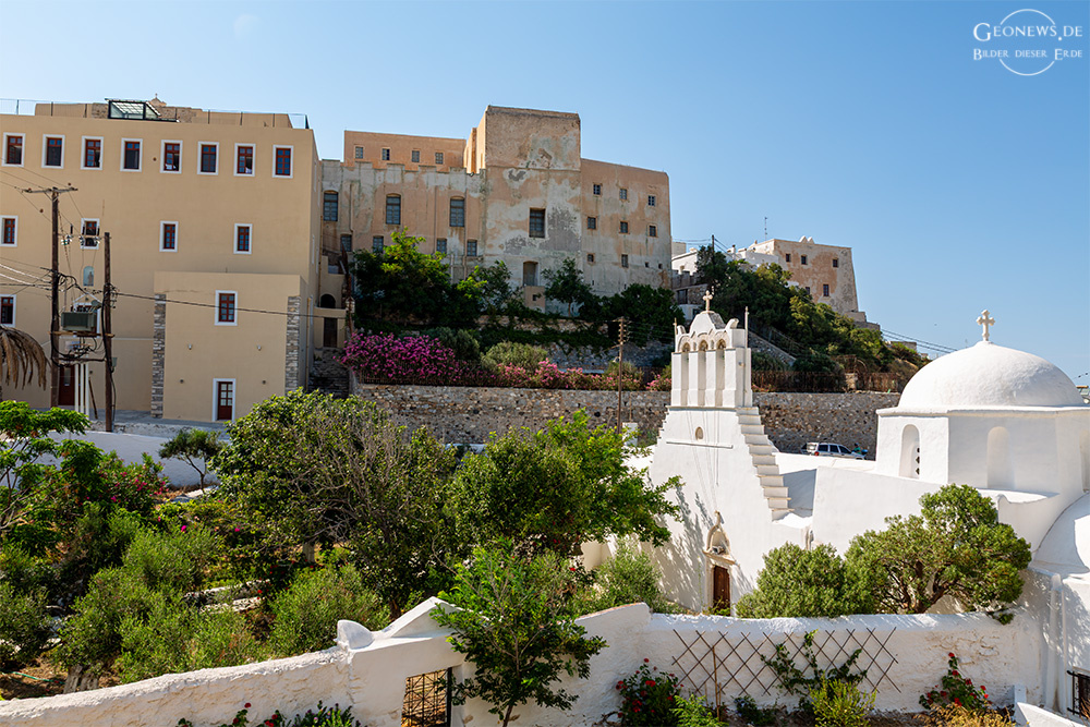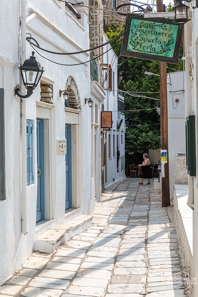 Zentraler Anlaufpunkt der Chora, wie alle griechischen Inselhauptstädte bezeichnet werde, ist der Altstadtbereich mit dem auf einer kleinen Anhöhe thronenden venezianischen Kastell. Die Burg wird auch als Kastro bezeichnet. Bourgos, Agora und Grotta, die ältesten Stadtvierteln der Chora, umringen die Burganlage. Nur über drei Burgtore kann die die Burg selbst betreten werden.