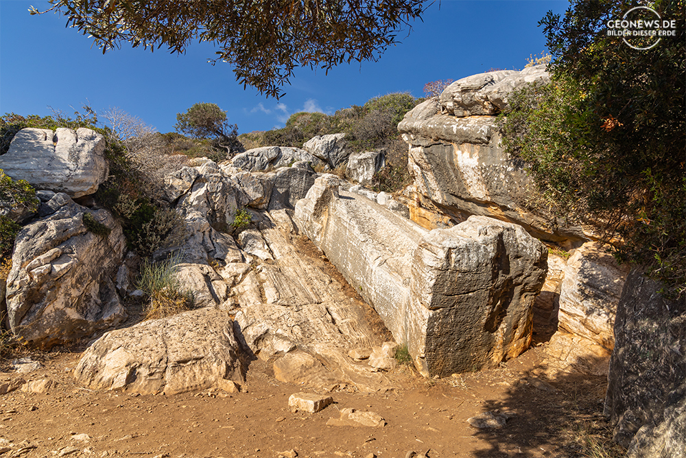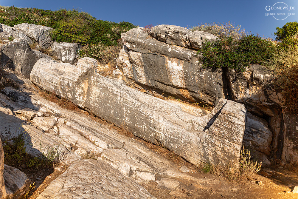 Der größte Steinbruch ist dabei der Steinbruch Alexander, der auch namensgebend für die auf Naxos vorherrschende Marmorart ist. Der Marmor aus Naxos zeichnet sich durch seine äußerst grobkörnige Struktur aus und besitzt einen bis zu über 98 Prozent hohen Calcitanteil. Der Marmor ist somit sehr rein. Dies gibt ihm außerdem eine sehr hohe Transparenz. Auf der Nachbarinsel Paros wird dieser Art von Marmor auch als λυχνίτης — λichnetes bezeichnet, was so viel wie “Der Durchscheinende” bedeutet.