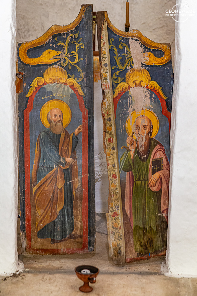 Daneben befindet sich die zweischiffige Kapelle (somit für Orthodoxe und Katholiken) des Heiligen Johannes aus dem 13. Jahrhundert. Am Angang finden sich zwei Wappen und einigen Skulpturen. Das Wappen gehört dem Venezianer Domenico Sciavo, Admiral des Herzogs von Naxos und Herrscher von Ios und ist eines der ältesten Familienwappen auf Naxos. Es zeigt den geflügelten Löwen von Venedig, der ein Banner, dessen Mitte von einem Dreizack bedeckt wird, hält. Die Venezianer Scavi haben diese Kirche einst renoviert und mit ihrem Wappen versehen.