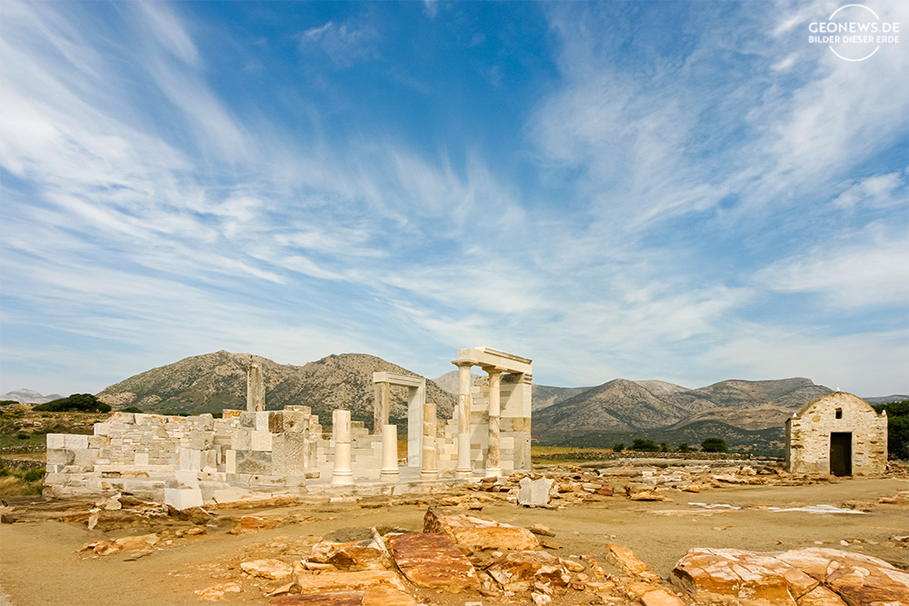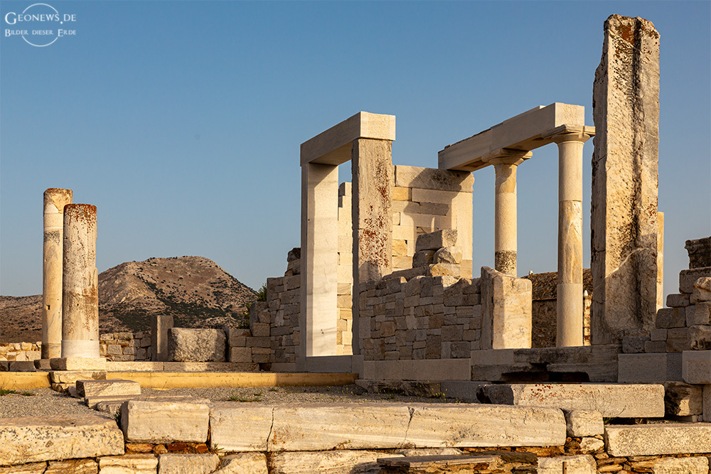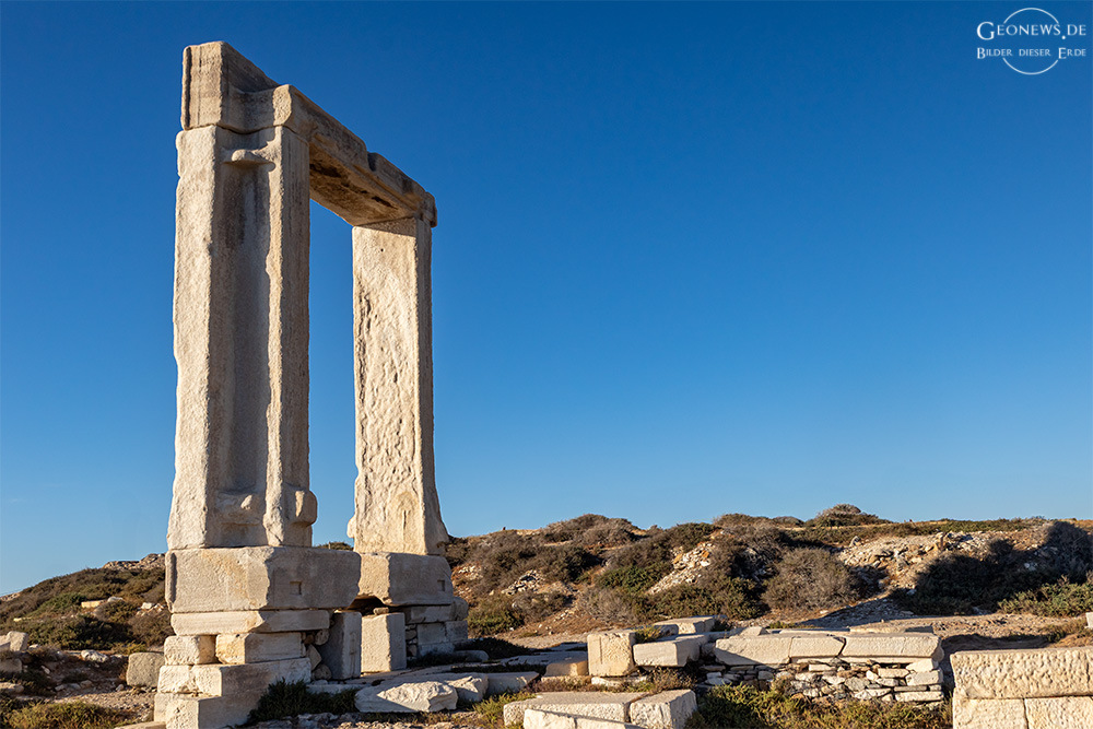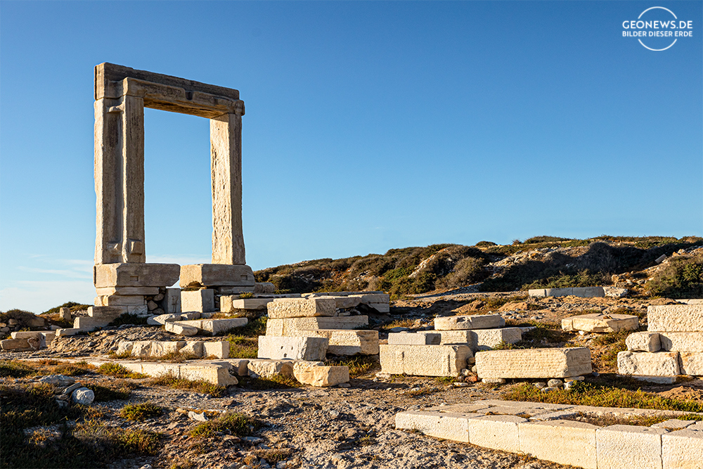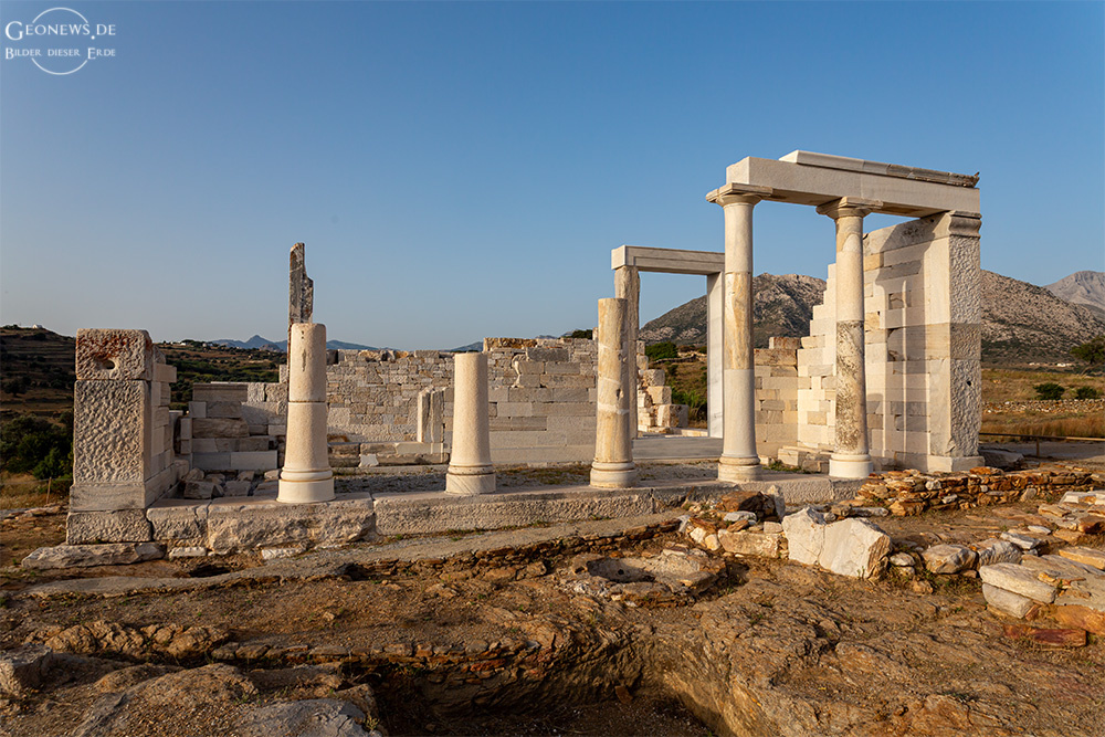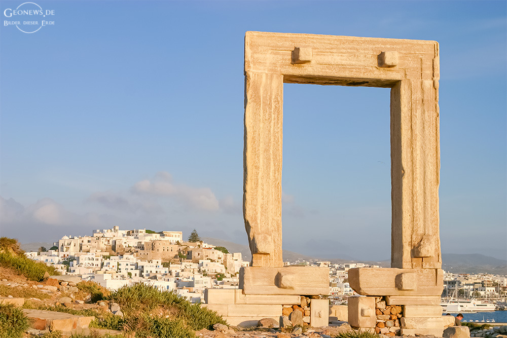 Das wichtigste Wahrzeichen der Insel ist wohl die Portara, dem Eingangstor zu den noch verblieben Resten des Tempels des Apollon. Der Tempel liegt auf einer der Chora vorgelagerten kleinen Insel und wurde wohl nie fertiggestellt. Aus Mangel an Baustoffen bauten die Einwohner im Laufe der Zeit den Tempel bis auf ein paar Grundmauern und den mächtigen Torsteinen zurück. Somit fand ein Vielzahl an Marmorsteinen dann in der ganzen Altstadtbereich beim Häuser- und Befestigungsbau Verwendung.