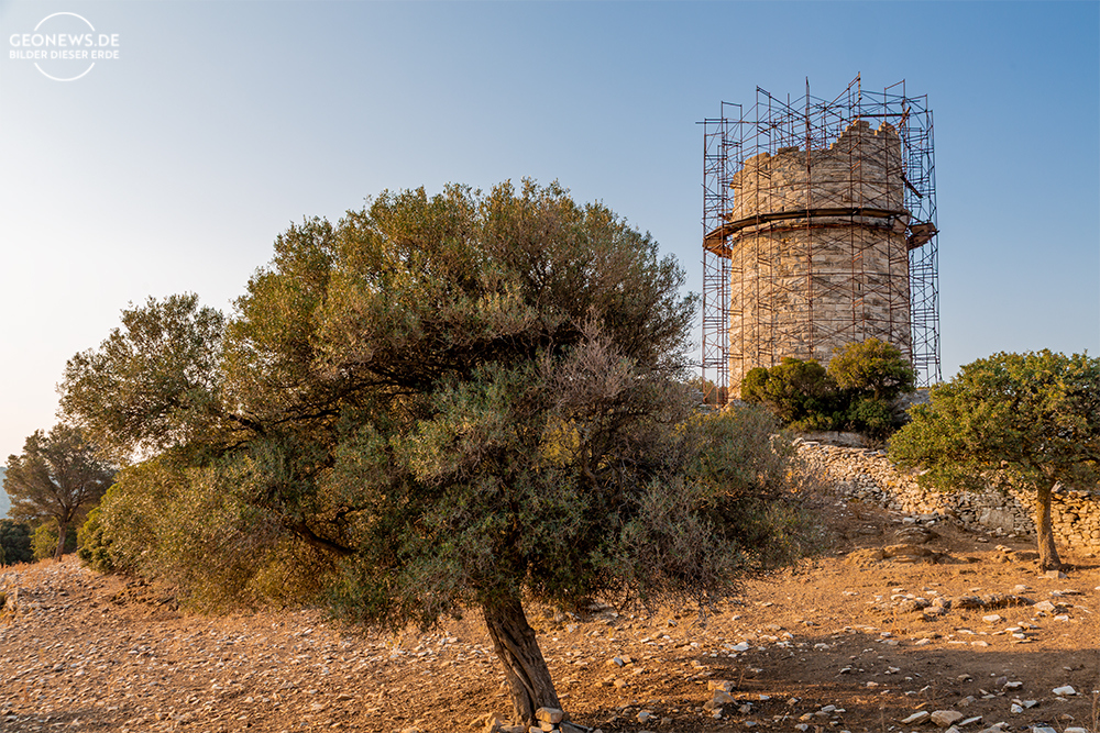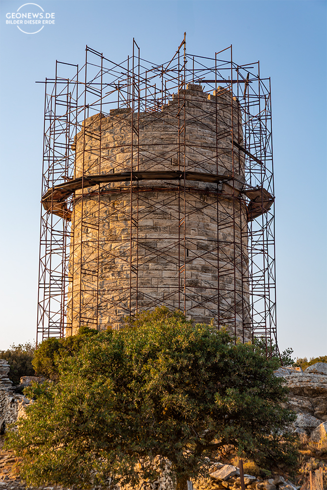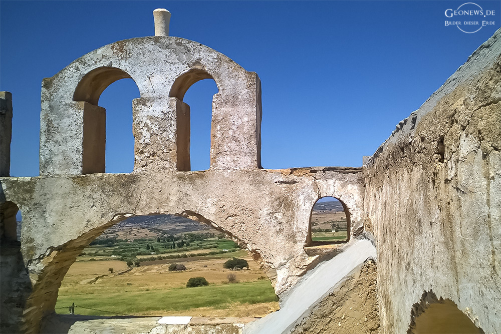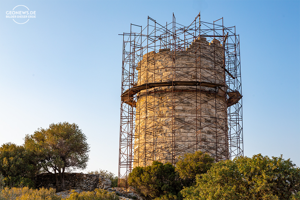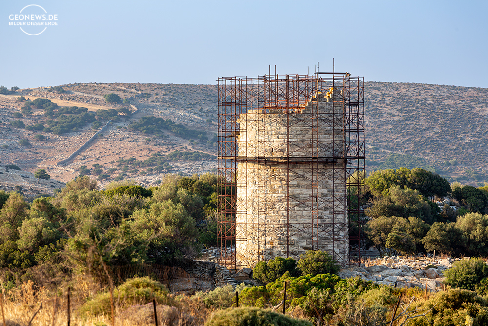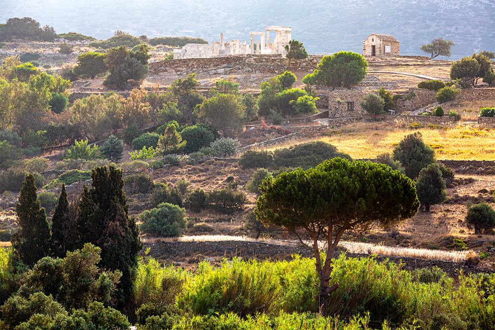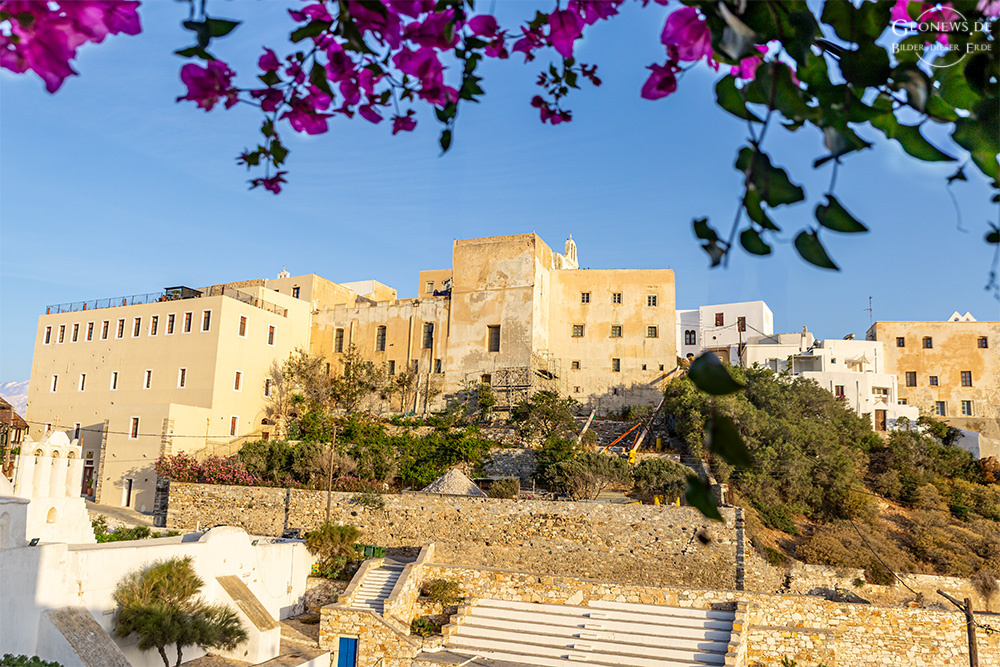 Das wichtigste Wahrzeichen der Insel ist wohl die Portara, dem Eingangstor zu den noch verblieben Resten des Tempels des Apollon. Der Tempel liegt auf einer der Chora vorgelagerten kleinen Insel und wurde wohl nie fertiggestellt. Aus Mangel an Baustoffen bauten die Einwohner im Laufe der Zeit den Tempel bis auf ein paar Grundmauern und den mächtigen Torsteinen zurück. Somit fand ein Vielzahl an Marmorsteinen dann in der ganzen Altstadtbereich beim Häuser- und Befestigungsbau Verwendung.