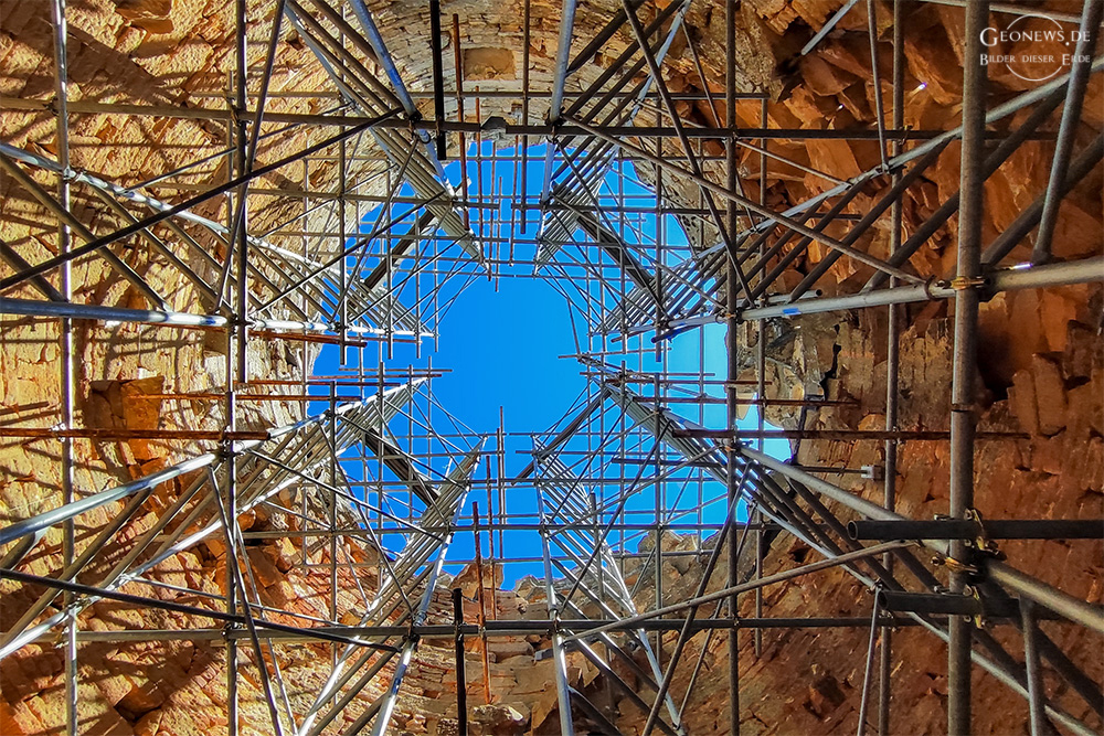 Im Jahr 2025 wurde jedoch jetzt endlich begonnen, den Turm einer aufwendigen Sanierung zu unterziehen und somit den totalen Verfall für die nächsten Jahrzehnte zu verhindern. Unterhalb des Pyrgos liegt weiterhin eine alte Klosteranlage. Das Kloster wurde im 11. oder 12. Jahrhundert errichtet. Archäologen restaurieren zurzeit die gesamte Anlage. Sie fanden im Inneren der Kirche unter dem neuer Putz schon einige alte Fresken und legen die Freseken jetzt frei und restaurieren sie.