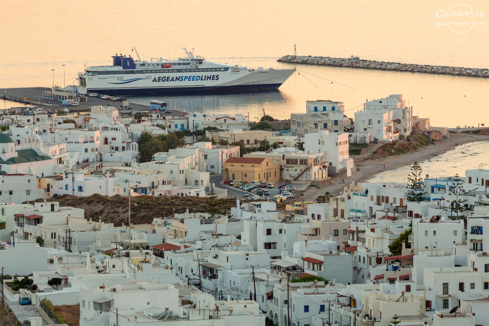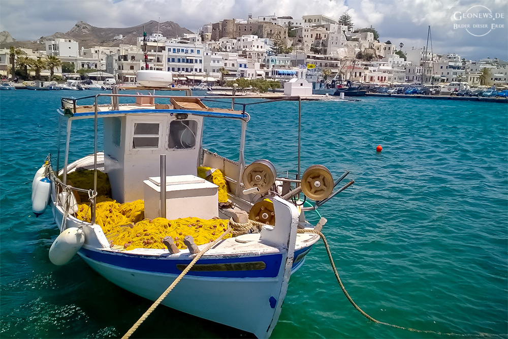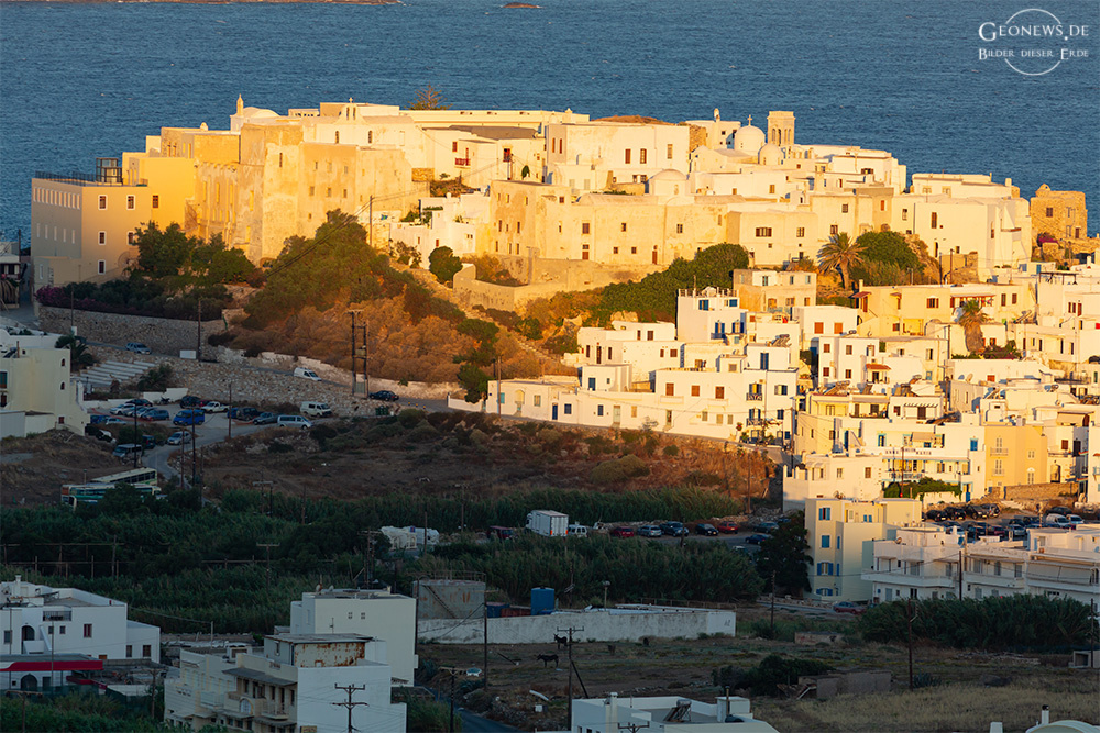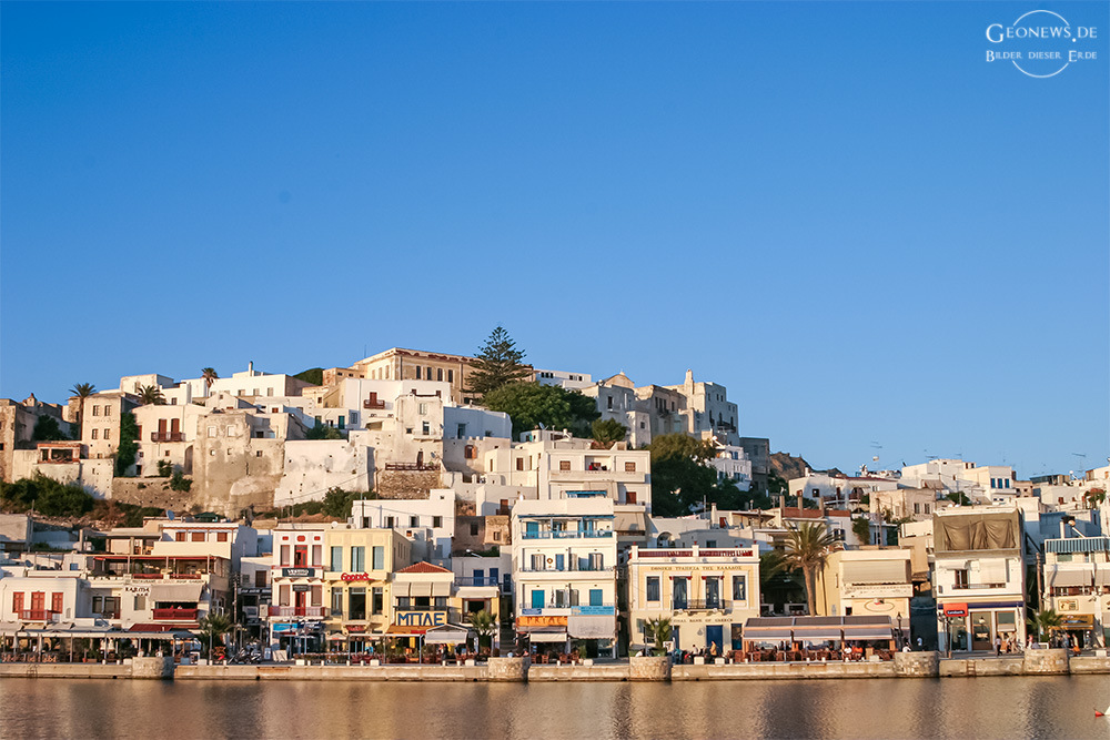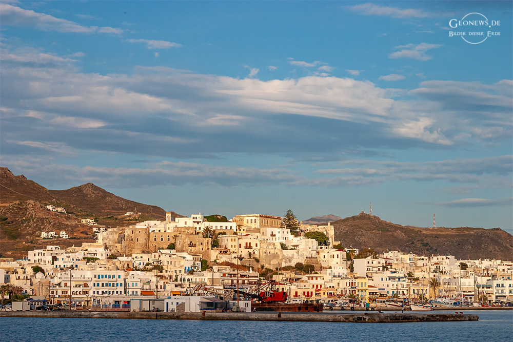 Hauptort auf der Insel ist die gleichnamige Stadt Naxos, die im Westen der Insel, direkt am Meer gelegen ist. Auch der größten und wichtigste Hafen der Insel liegt am Fuße Stadt. Von Athen und auf dem Weg nach Athen verkehren hier somit die meisten Schifffahrtlinien, im Sommer auch mehrmals täglich.