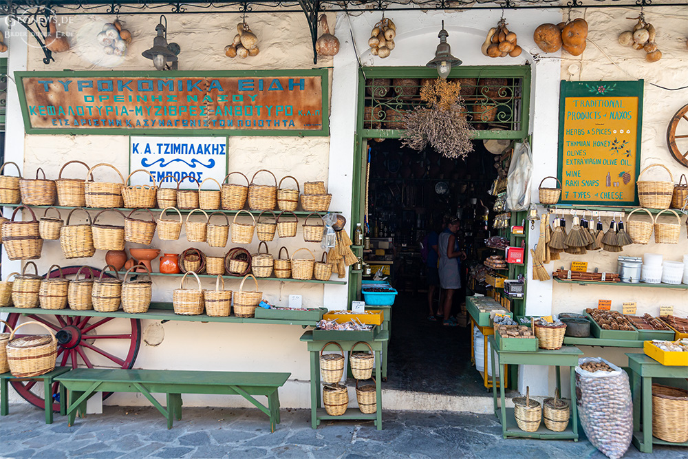 Verlässt man die Hauptstraße mit dem hektischen Treiben des Tagestourismus, befindet sich man umgehend in dem deutlich ruhigeren Gassengewirr mit einer Vielzahl an kleineren Museen, in denen das Handwerk aus vergangenen Seiten dargestellt wird. Natürlich besitzt auch Filόti einen für Naxos typischen Wehrturm, den Pyrgos Barozzi.