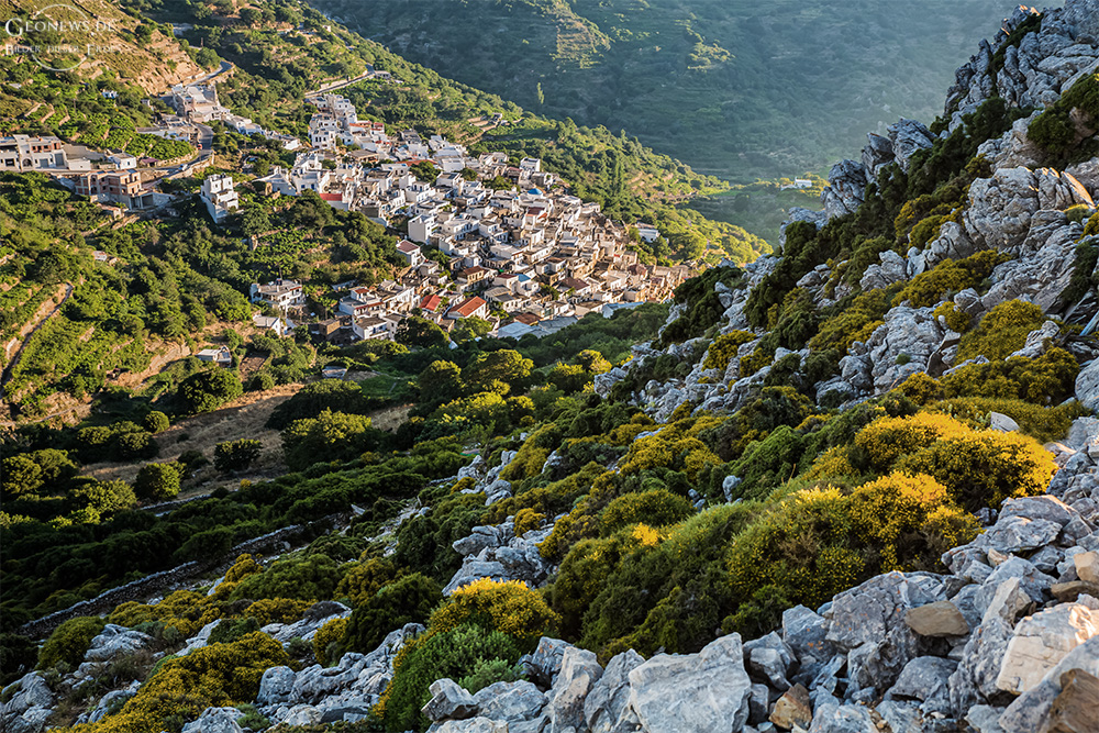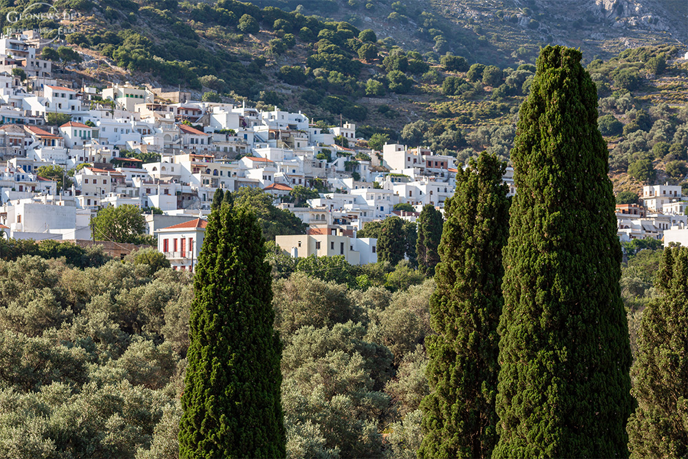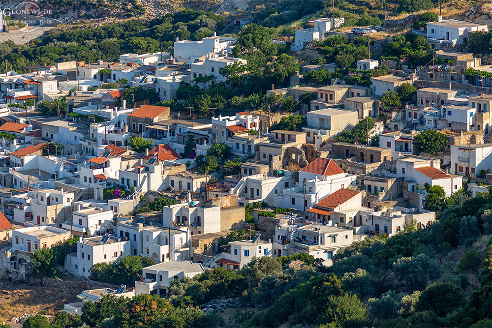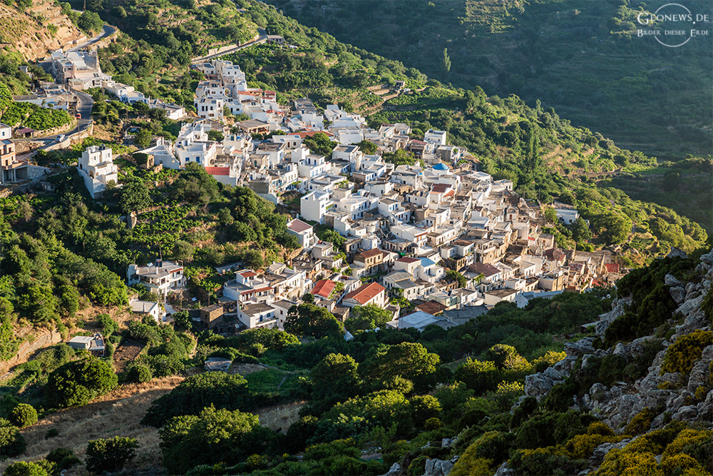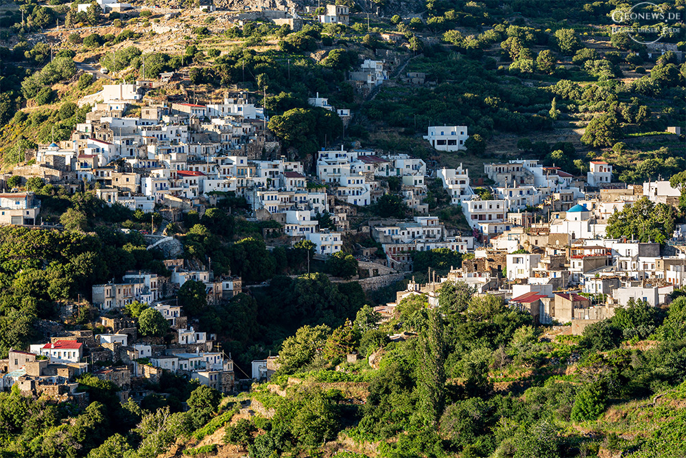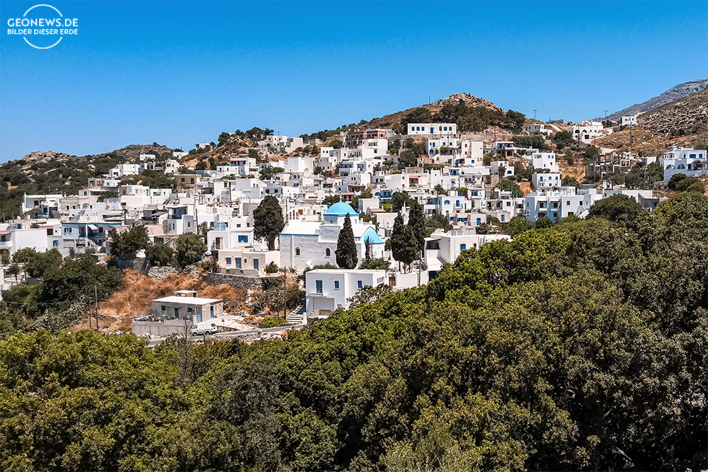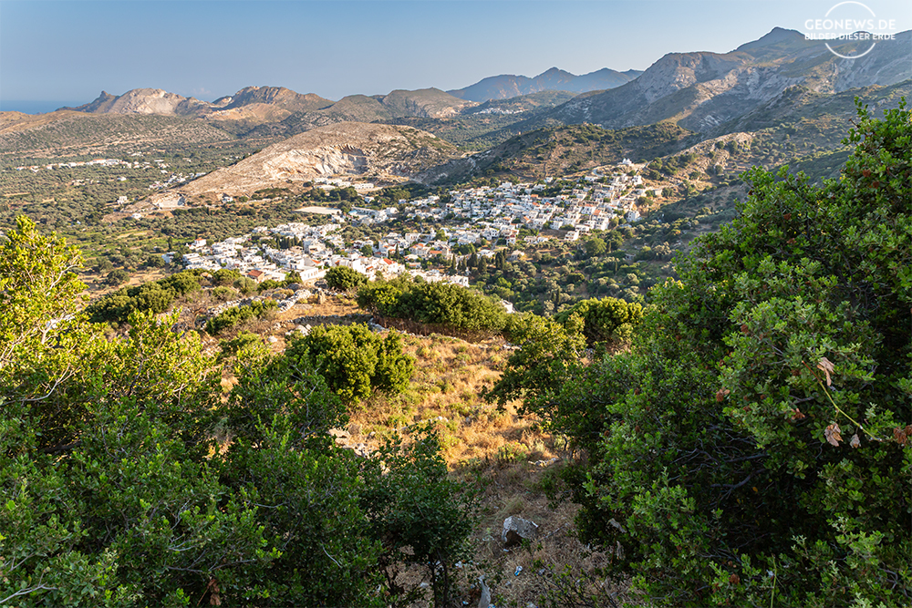 Etwa 30 Kilometer nordöstlich von Naxos-Stadt liegt die Gemeinde Kόronos liegt. Ähnlich einem Amphitheater liegen die Häuser des Ortes an den Hängen einer Schlucht, die sich bis zum ehemaligen Hafen in Lionas erstreckt. Kόronos ist eine der ältesten Siedlungen im Nordosten von Naxos und wurde erstmals um 1200 n. Chr. schriftlich erwähnt wurde. Wohl ist die Ortschaft Kόronos eine der schönsten und authentischsten Bergdörfer auf Naxos. Eine Vielzahl von terrassenförmig dangelegten Feldern rahmen den Ort. Auf den umliegenen Hängen bauen die Bauern von Kόronos vor allem Wein, Gemüse, aber auch Getreide an.