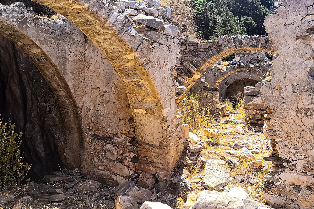 Heute sind die Ruinen in Besitz des griechischen Staates. Weiter findet sich in Melanes im fruchtbaren Talgrund die byzantinische Kirche Agios Georgios, die wahrscheinlich aus dem 12. Jahrhundert stammt. Bei Restaurierungsarbeiten wurden in Kircheninneren neben wichtige Fresken aus der byzantinischen Zeit auch römische Fresken aus dem 3. bis 4. Jahrhundert, die die römische Badekultur darstellen und somit auf eine frühere Nutzung dieses Gebäude als römisches Badehaus hinweisen, gefunden.