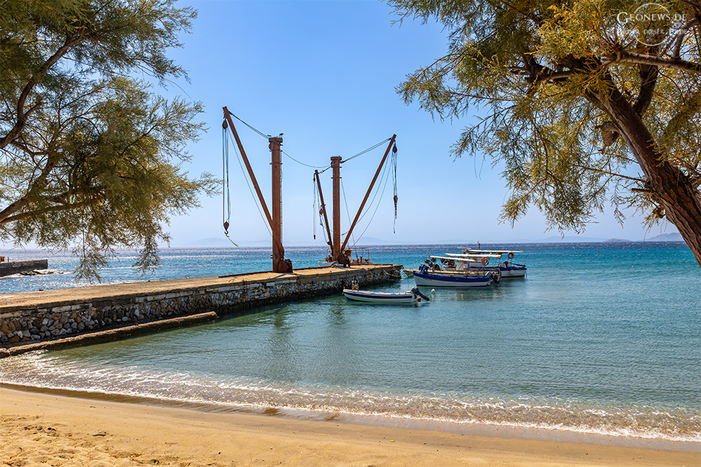 Das Dorf Apollonas liegt ziemlich abgelegen ganz im Norden von Naxos, ca. 35 km von der Chora entfernt, direkt am Meer an einer kleinen Bucht. Am Rande der Ortschaft mündet ein Flusssystem, dass aus den Bergen gespeist wird, ins Meer. Apollonas ist vor allem berühmt für den archaischen Kouros. Der ca. 11 m lange und ca. 80 Tonnen schwere Kouros liegt dabei oberhalb der Ortschaft in einem kleinen antiken Marmorsteinbruch. Die nicht komplett fertig gestellte Statue stammt wohl aus dem 6. bis 7. Jahrhundert vor Christus und soll wohl, nach dem unschwer zu erkennenden bärtigen Gesicht, den griechen Gott Dionysos darstellen.