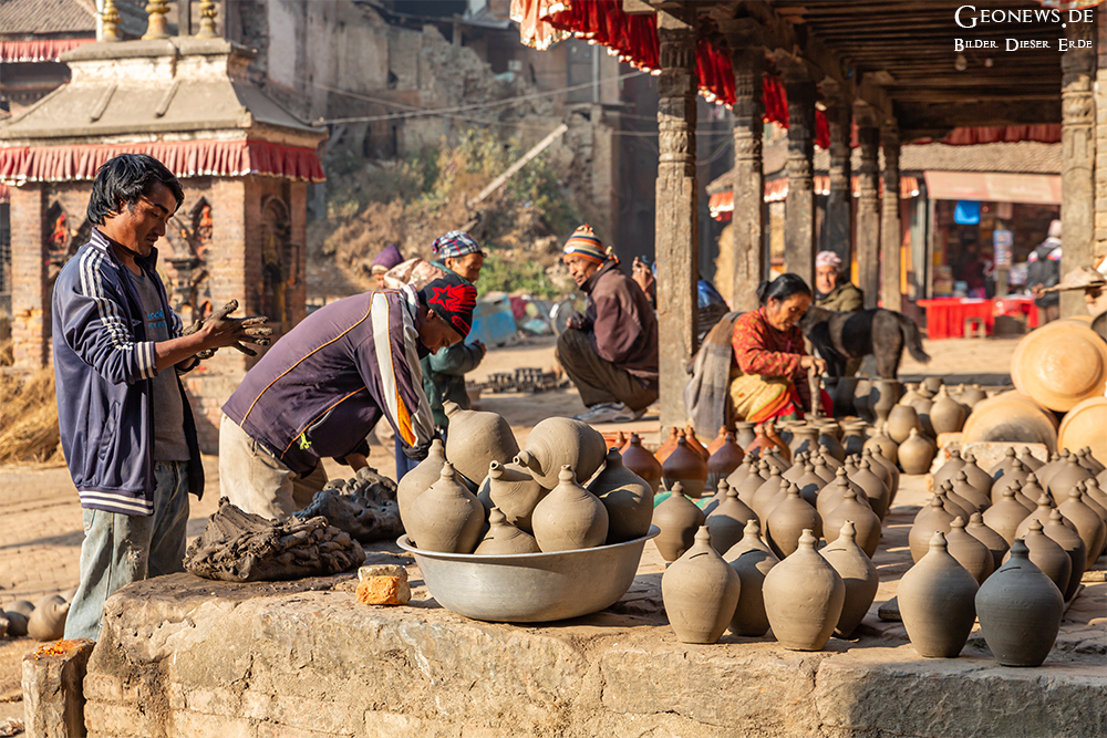 Bhaktapur liegt ca. 15 km östlich von Kathmandu und ist das künstlerische Zentrum von Nepal. Vor allem das Töpferhandwerk spielt in der Stadt eine große Rolle. Neben den Städten Kathmandu und Patan wurde auch Bhaktapur von der UNESCO im Jahr 1979 ins Weltkulturerbe aufgenommen. Bhaktapur wurde bereits mehrmals von Erdbeben, besonders im Jahr 2015 mit einer Stärke von 7,8 auf der Richterskala, schwer in Mitleidenschaft gezogen.