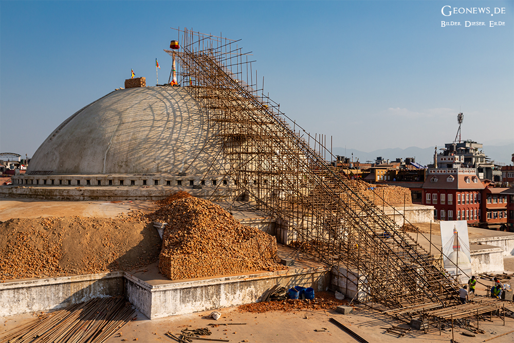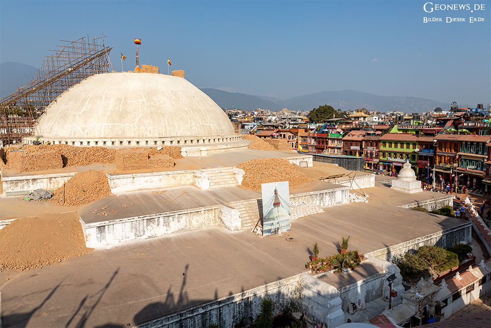 Etwa 5 km nordöstlich des Stadtzentrums von Kathmandu liegt die Bodhnath Stupa. Der Stupa ist einer der größten Stupas, wird auch Jharung Khashor genannt und wurde im 5. Jahrhundert erbaut. Der große Stupa symbolisiert zudem den Geist aller Buddhas. Allerdings wurde der Stupa bei dem Erbeben im Jahr 2015 schwer beschädigt, der mittlere Turm wurde dabei komplett zerstört. Mittlerweile ist die Anlage wieder komplett restauriert und erstrahlt in alter Schönheit.
